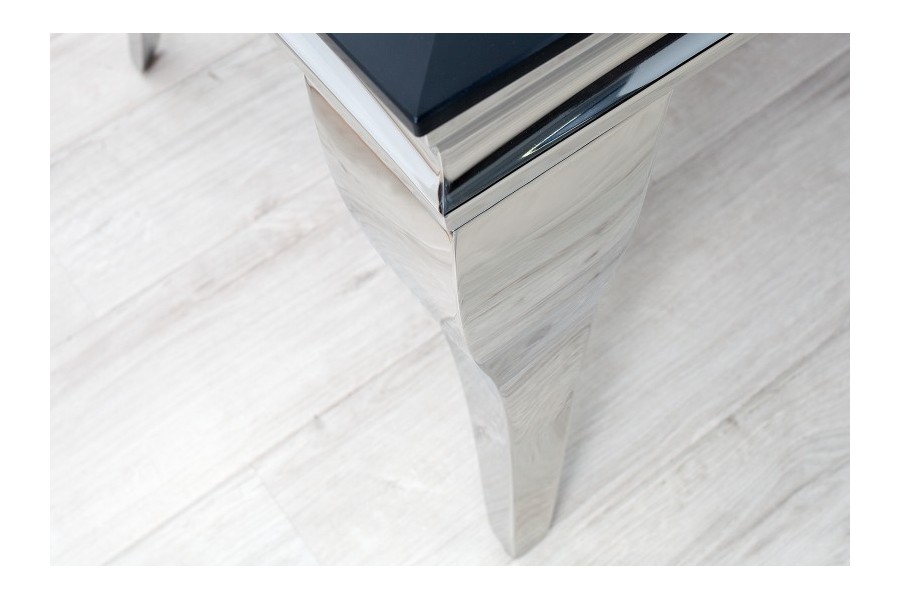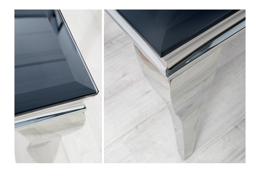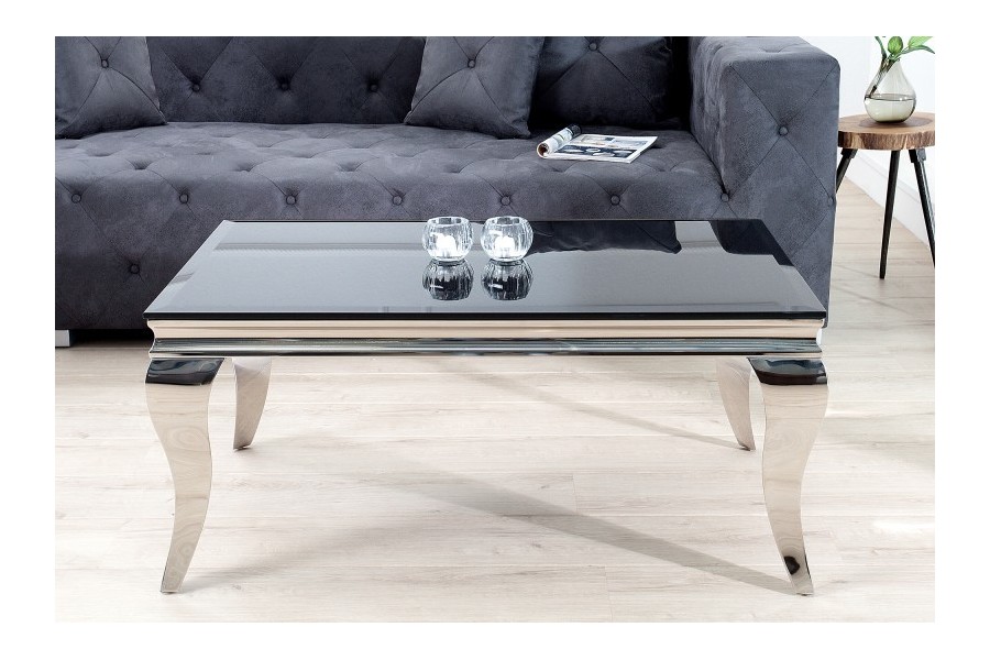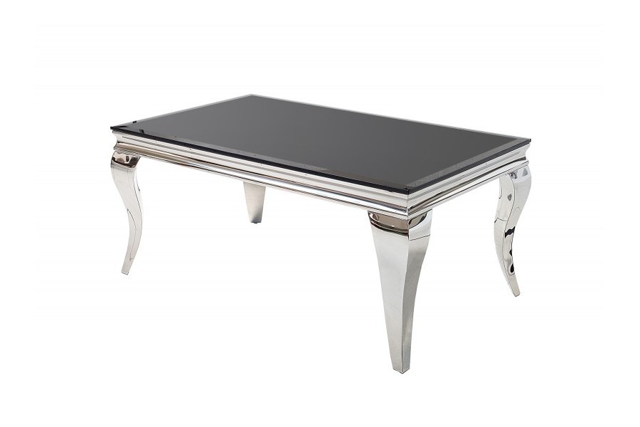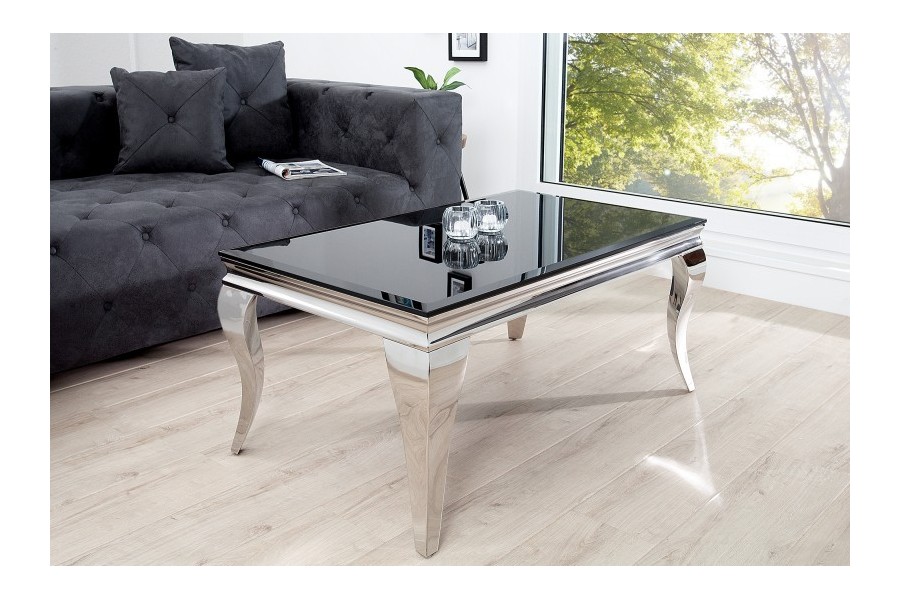 Élégante table basse contemporaine coloris argenté et noir ! Elle est composée d’un grand plateau rectangulaire en verre trempé monté sur une structure en acier inoxydable solide et résistant. Son design baroque est très authentique avec des coloris brillants et épurés ! Elle ornera parfaitement la décoration de votre salle à manger !