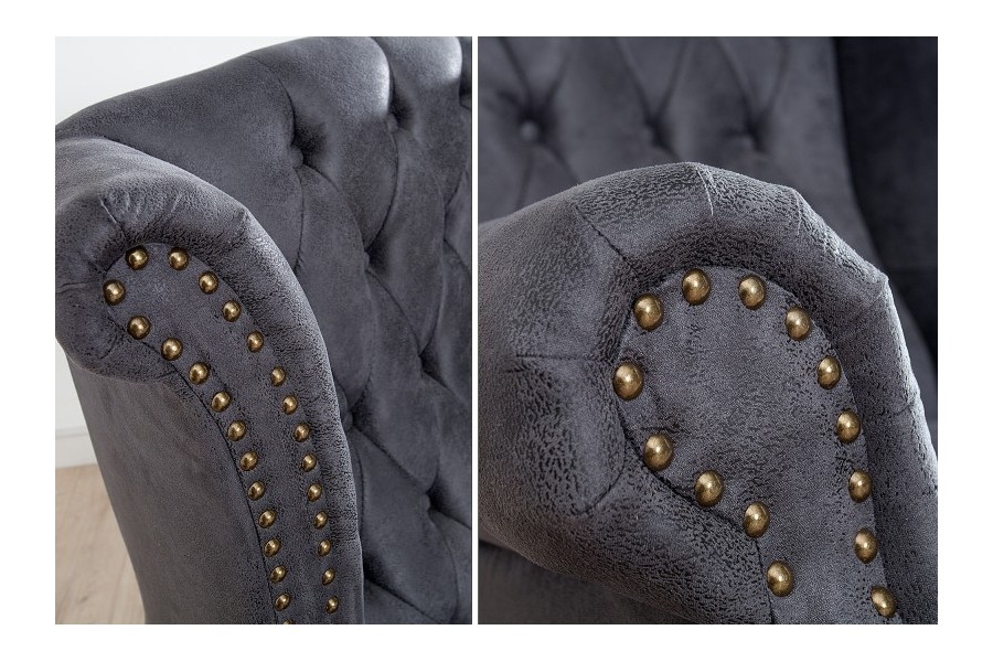 Avec son style baroque, ce magnifique fauteuil capitonné Chesterfield de coloris gris, ajoutera une touche élégante dans votre salon ou dans une chambre. Son design évoque la façon anglaise raffinée de la vie, il est chic et idéal pour créer une ambiance rétro !