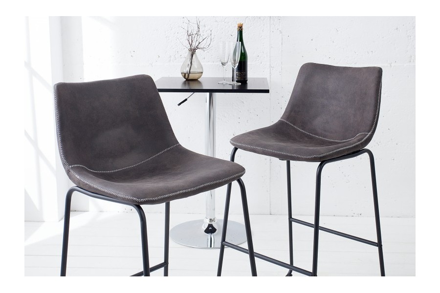 Lot de 2 tabourets de bar design vintage coloris gris en microfibre