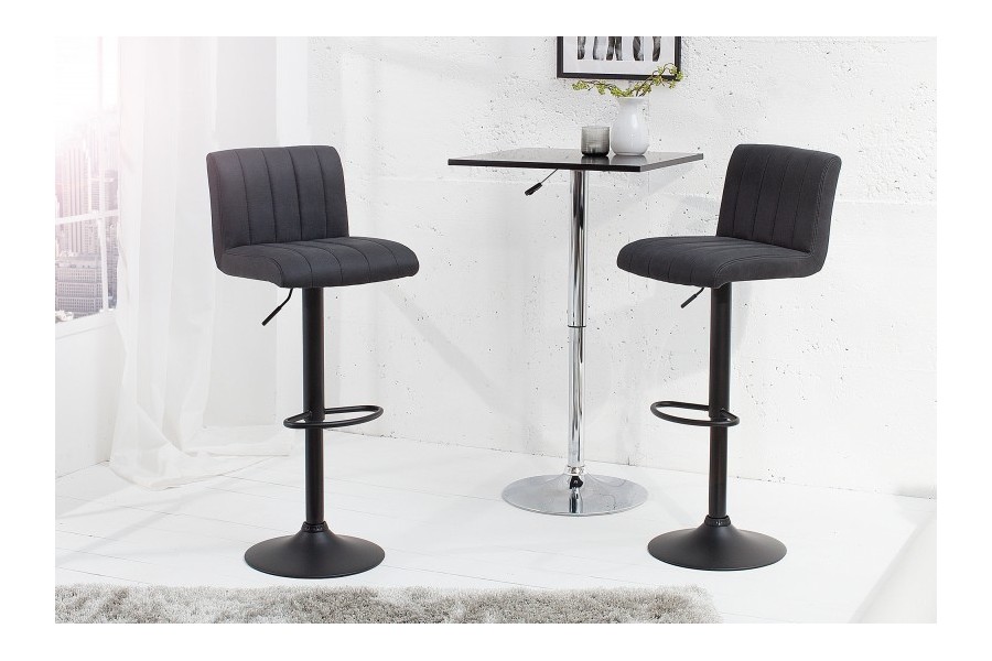 Un tabouret de bar de style tendance sublimera à merveille votre séjour ! Son assise est rembourrée avec une mousse polyester de meilleure qualité, revêtue joliment en microfibre douce de couleur gris vintage avec piétement central, il saura offrir un effet chic et luxueux à la pièce ! Très pratique, il est réglable en hauteur selon votre choix, et dispose d'un repos-pied pour un confort total ! Excellent autour de votre table de bar ou votre comptoir de cuisine, tout en bénéficiant d'un rapport qualité/prix exceptionnel !
