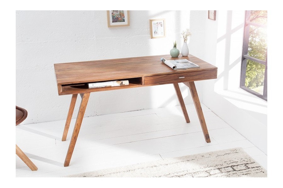 Table de bureau design rétro de 120cm à un tiroir et une niche