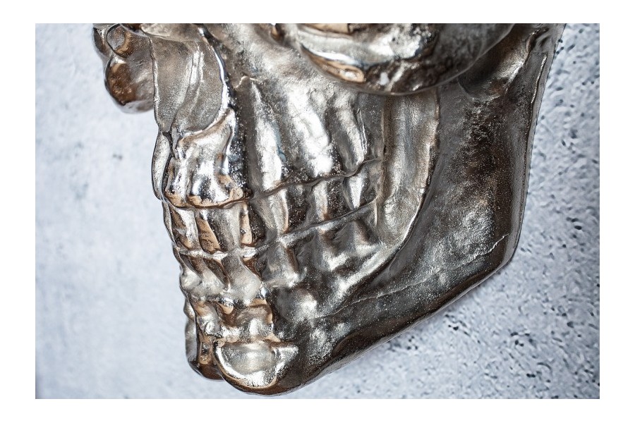 Sculpture murale design crâne humain en aluminium coloris argenté