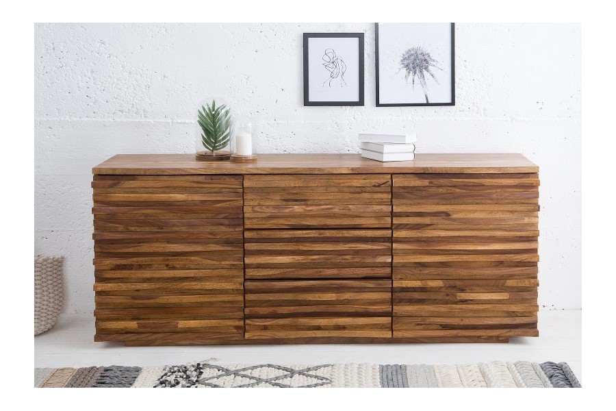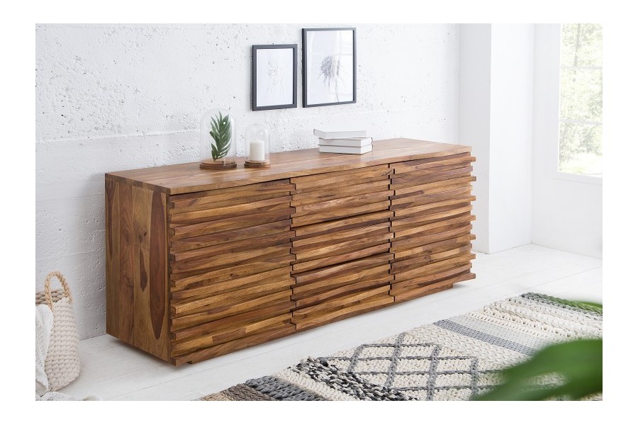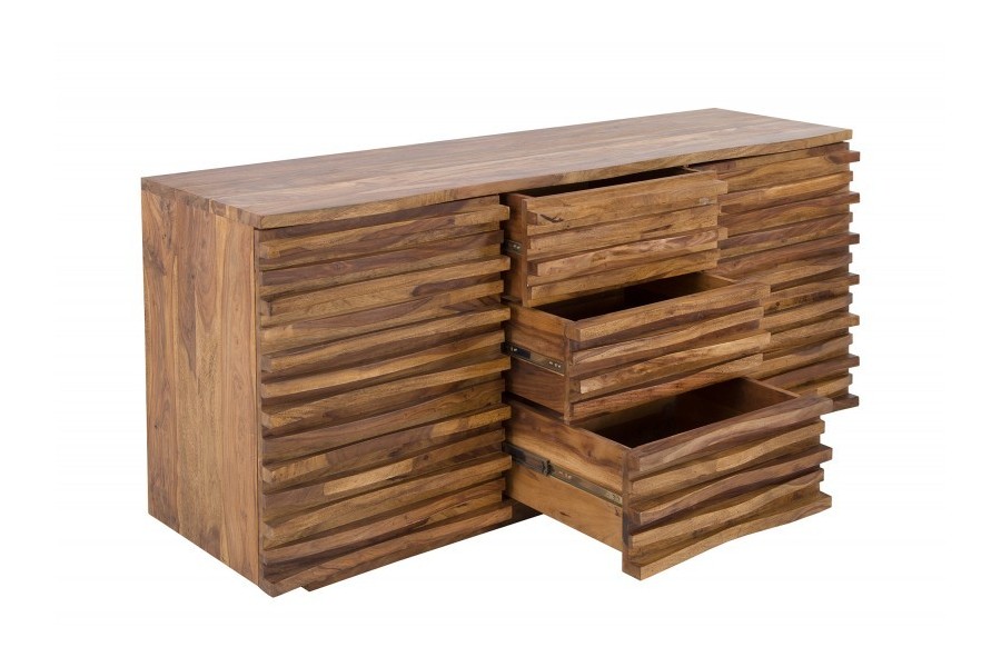 Buffet en Bois Massif RELIEF – 160 cm – Finition Pierre en Sheesham Marron