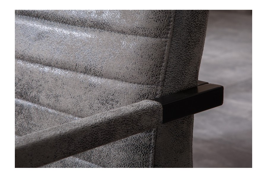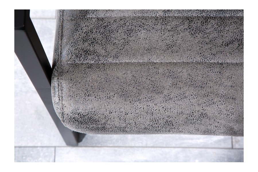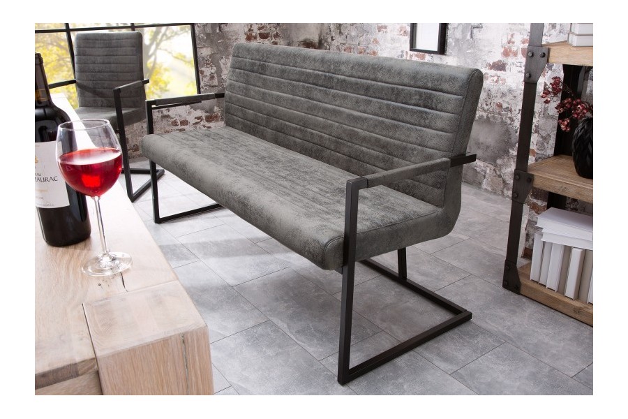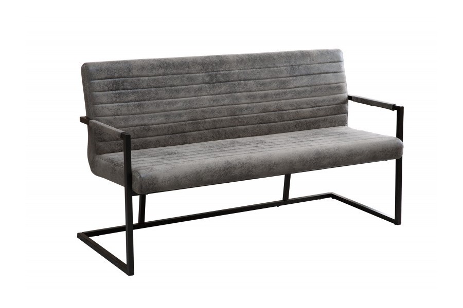Banc design coloris gris antique en microfibre avec piétement en métal