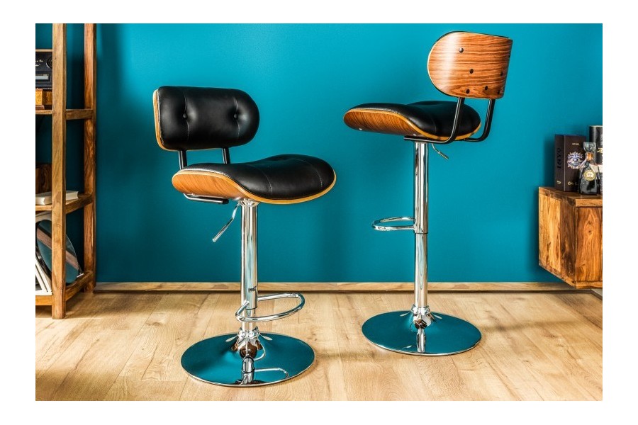 Tabouret de bar design rétro de couleur noire avec piétement réglable