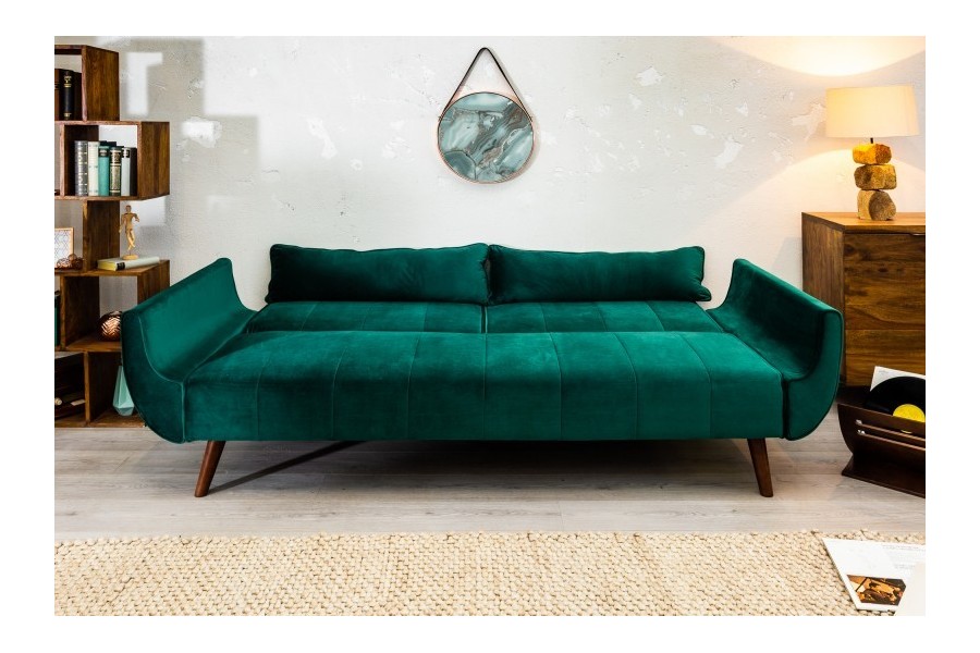 équipez d'une manière luxueuse votre salon avec cet élégant canapé convertible coloris vert ! Très chic et confortable grâce à son assise fabriqué parfaitement en polyester de haute qualité avec un revêtement en velours de premier choix ! De plus ses pieds en bois massif vous garantiront une solidité totale ! Très pratique, il vous permettra de profiter un couchage supplémentaire grâce à sa structure convertible ! un meuble parfait à toute épreuve avec un prix incroyable !
