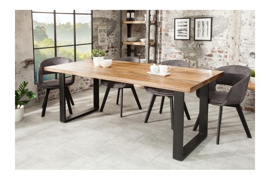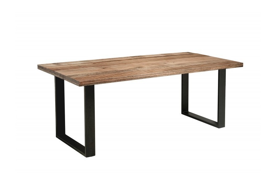 Table à manger 180cm coloris naturel et noir en bois massif et fer