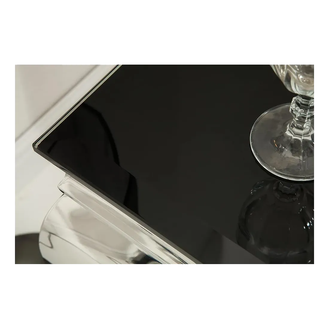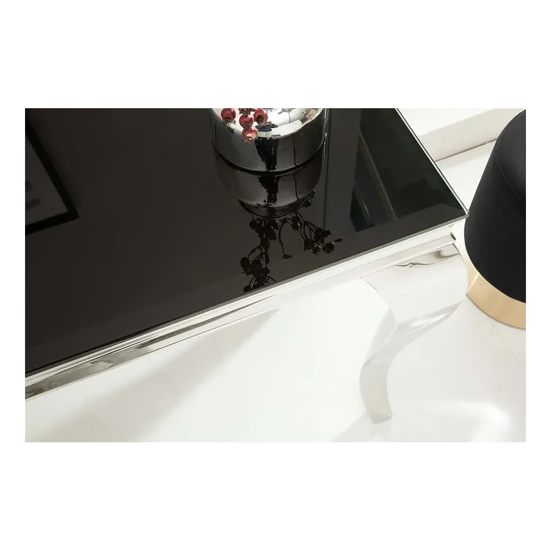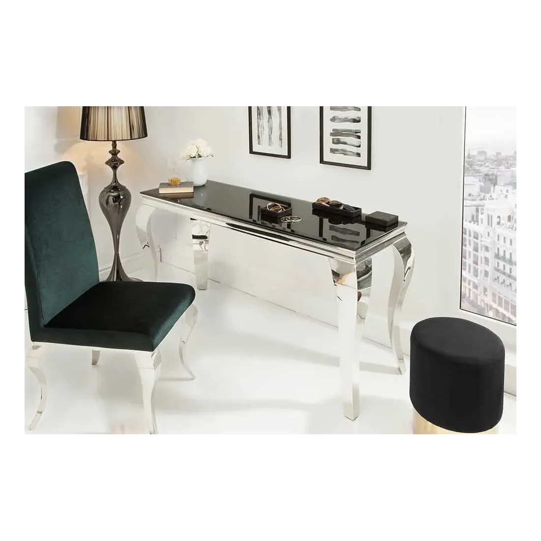 Console élégante MODERN BAROCK 145cm verre opale noir pieds en acier inoxydable