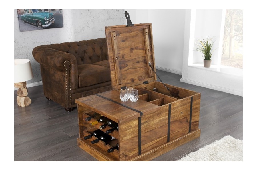 Affinez votre salon avec cette table exceptionnelle! Avec rangement décoratif pour vos bouteilles de vin et beaucoup d'espace de stockage grâce aux compartiments internes