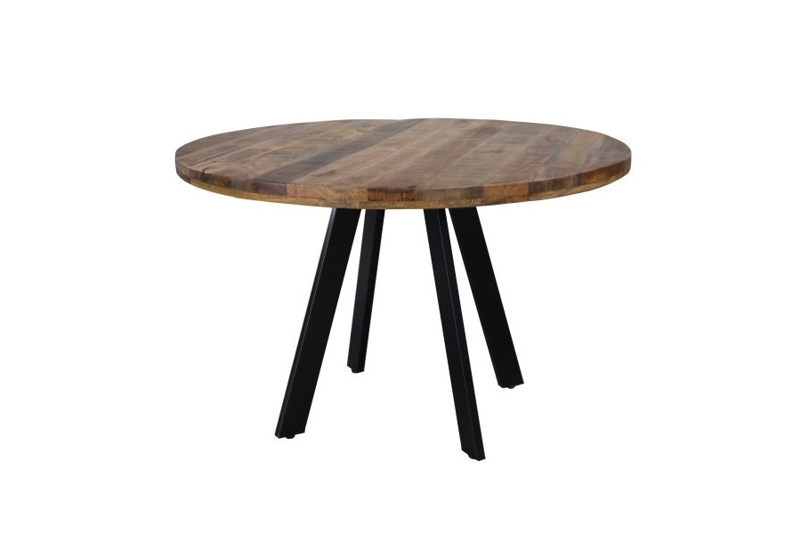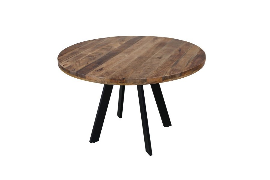 Table à manger design rond de 120 cm coloris naturel et noir en bois massif et métal