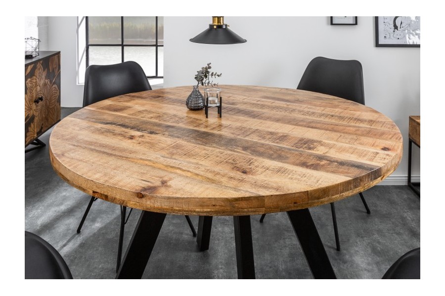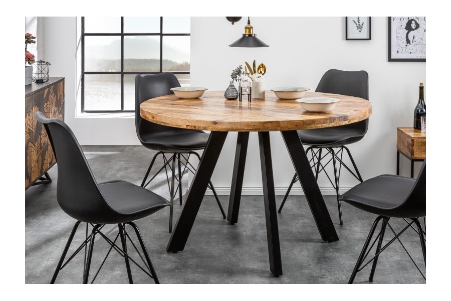 Une magnifique table à manger de forme ronde, coloris naturel et noir, design industrie ! Faite pour vous, conçue en bois massif et en métal de premier choix, garantissant l'usage durable et la robustesse absolue ! Chic et pratique à la fois, elle trouvera en toute harmonie sa place chez vous à un prix incroyable !