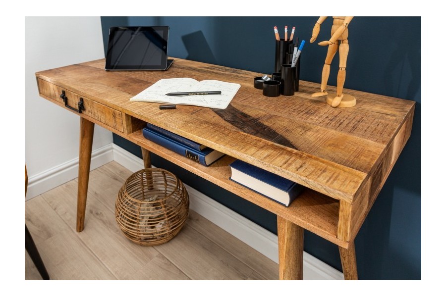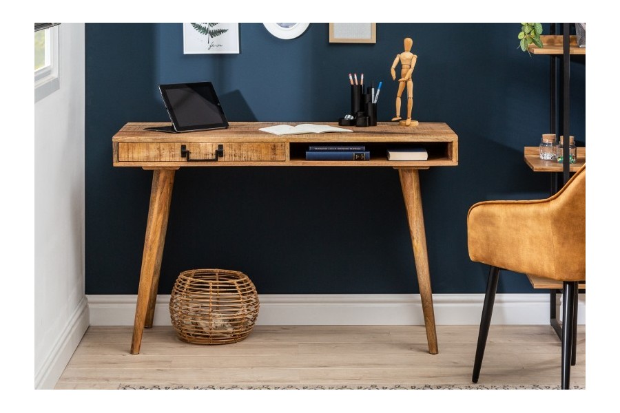 Élégant bureau de style scandinave, un mélange de sobriété et de design inspiré des payes nordiques ! fabriqué parfaitement en bois massif de belle couleur naturelle ! doté d'un tiroir et un compartiment pour organiser au mieux le coin de travail !