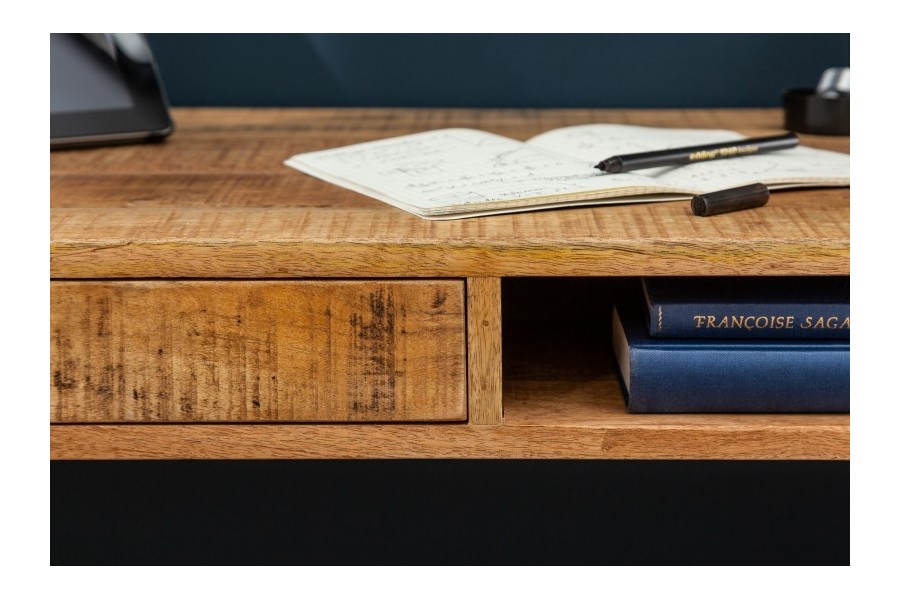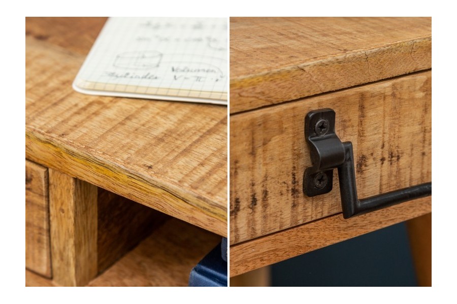 matériau : Bois massif, mangue, scellé, laqué Le bois est assemblé en planches et présente de légères élévations et des marques de scie.