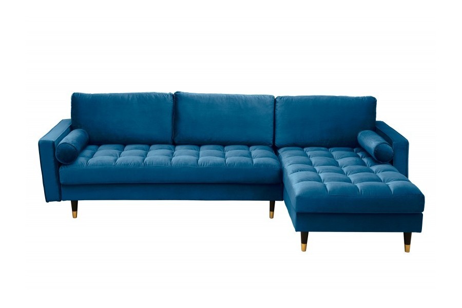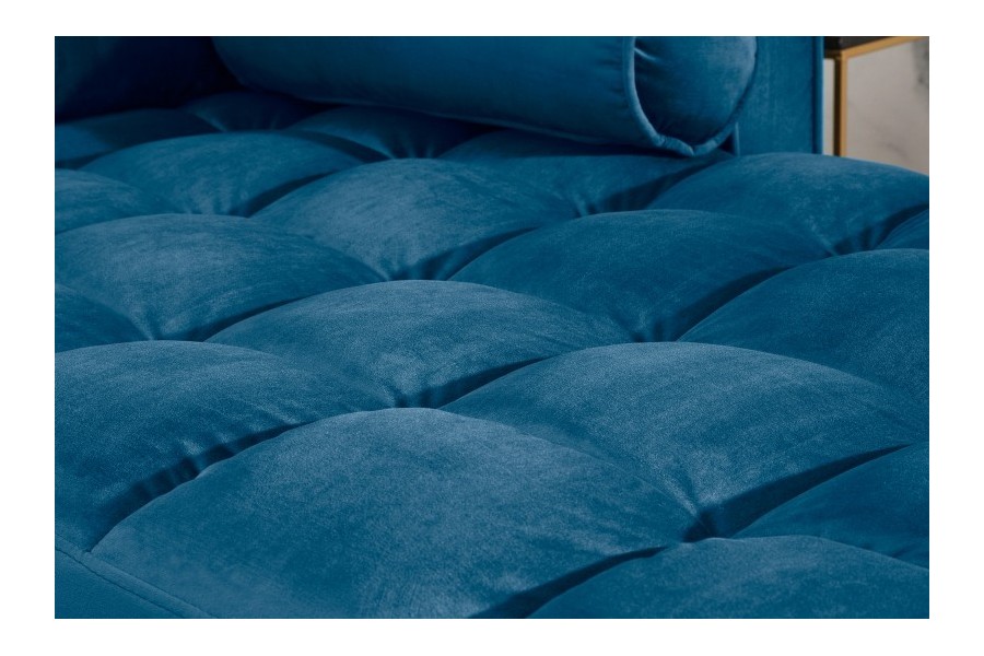Canapé d'angle VELVET design capitonné coloris bleu foncé