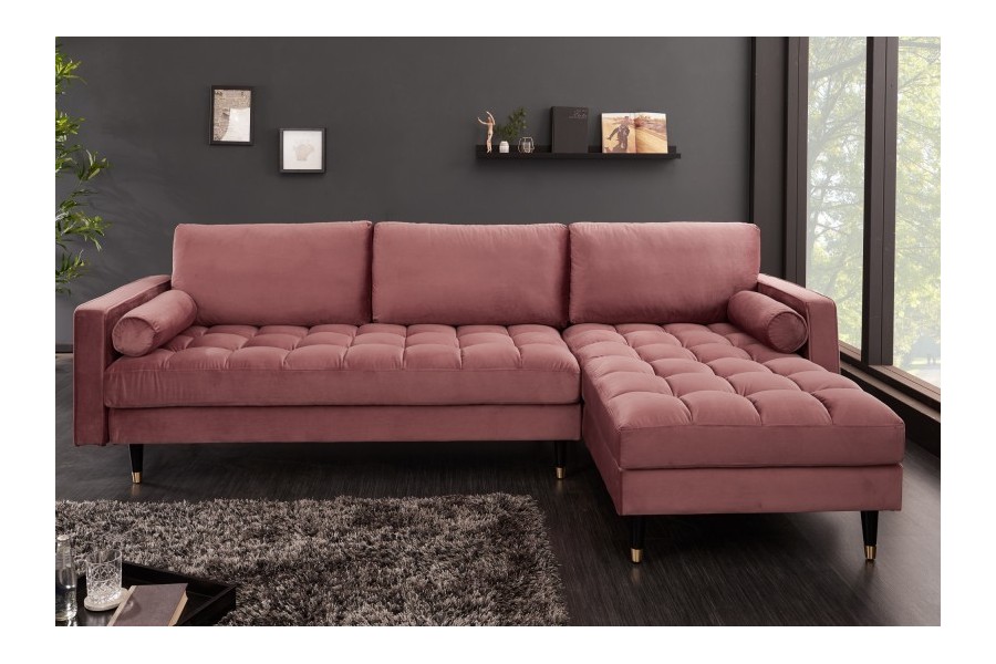 Canapé d'angle VELVET capitonné coloris rose foncé