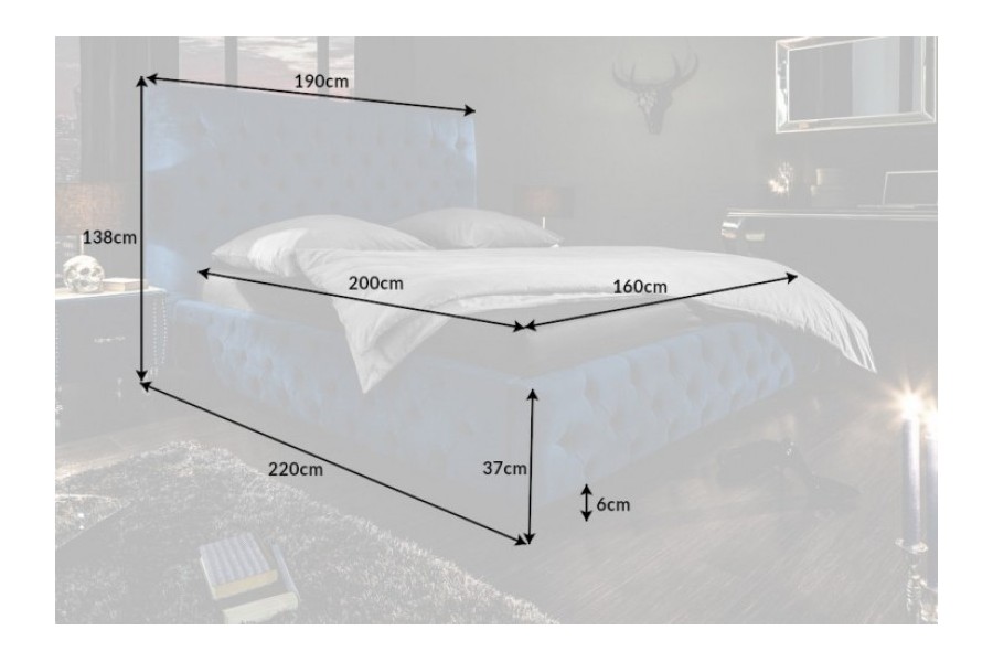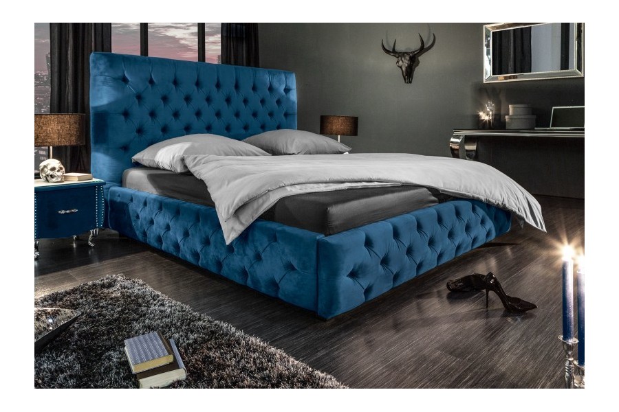 Meublez excellemment votre chambre à coucher avec ce magnifique lit design baroque moderne ! revêtue soigneusement en velours de premier choix de belle couleur bleue foncé, avec une structure en bois solide ! Esthétique et robuste, ce lit vous garantira une utilisation durable !