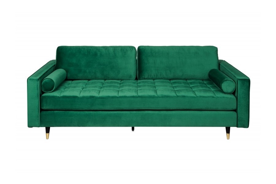 Magnifique canapé pour 3 places très confortable doté d'une assise capitonnée design chic et moderne ! revêtu joliment en velours de premier choix de belle couleur verte émeraude avec piétement en bois coloris noir et doré !