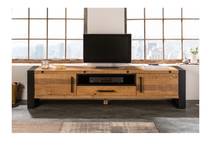 Ce meuble TV en bois massif de style industriel est conçu pour structurer élégamment votre espace salon. Avec ses 200 cm de longueur , il offre une grande surface pour accueillir votre téléviseur et vos équipements multimédias.