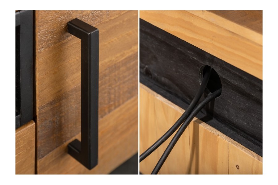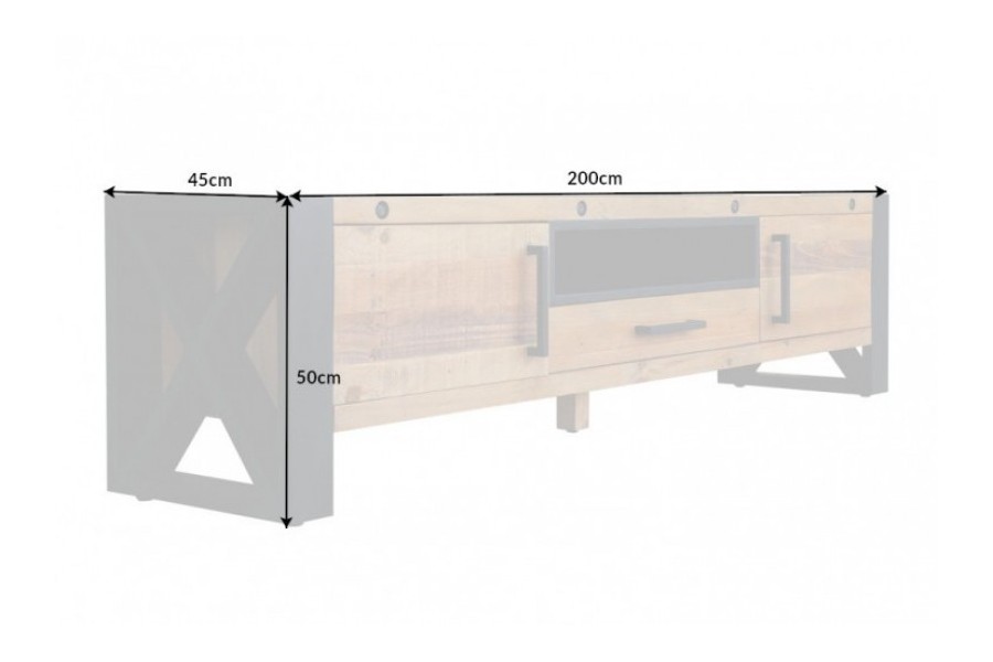 Apportez une touche industrielle ultra tendance à votre séjour avec ce meuble TV de 200 cm en bois massif . Son alliance de bois naturel et de métal noir, associée à des rangements fermés pratiques, en fait une pièce à la fois esthétique et fonctionnelle.