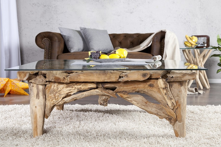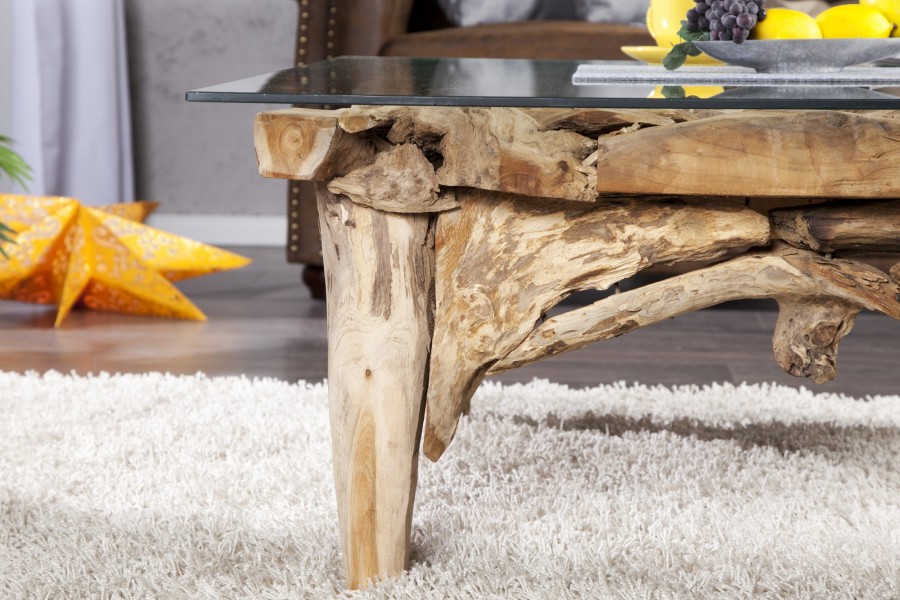 Transformez votre salon avec cette table basse en bois flotté, une pièce captivante qui allie nature et modernité. Fabriquée en bois de teck massif non traité, chaque table est unique grâce aux variations naturelles du bois. Son design artisanal apporte une chaleur organique, tandis que son plateau en verre trempé met en valeur la beauté brute du bois tout en offrant une surface pratique et résistante.