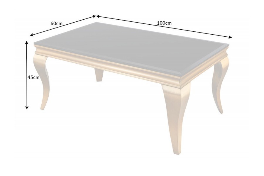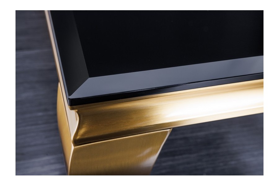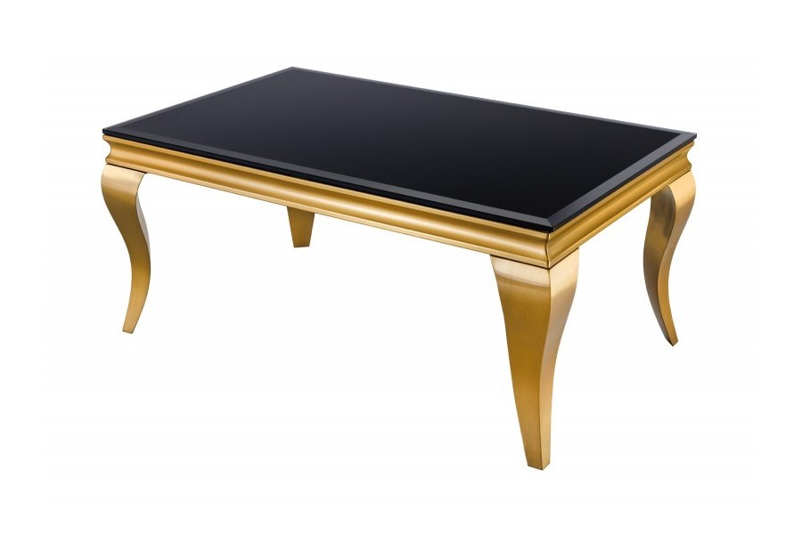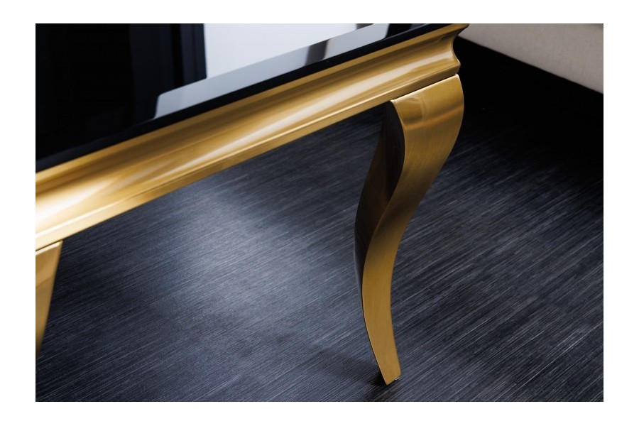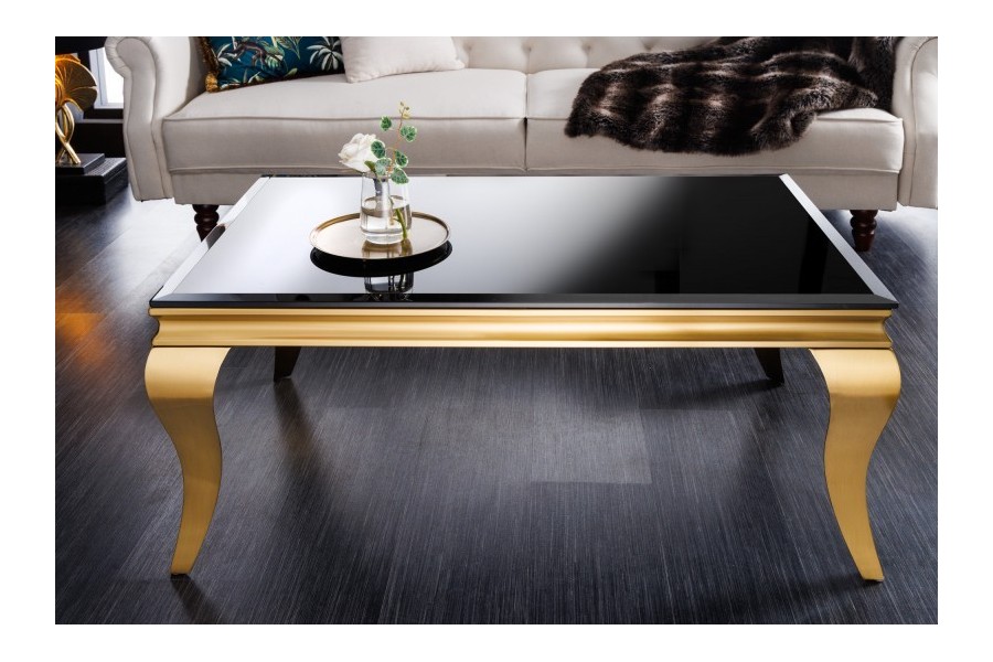 Table basse 100cm verre opale noir de style baroque pieds doré