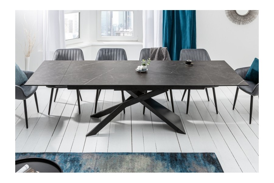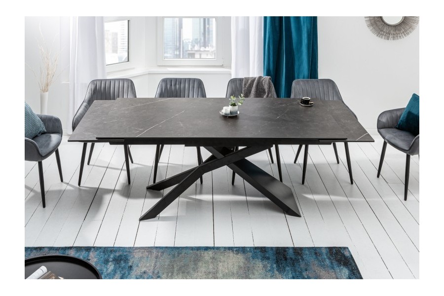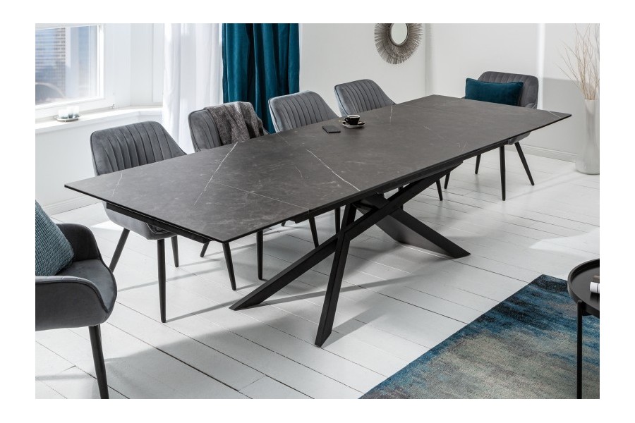 Table à manger 180-220-260cm céramique aspect de pierre graphite