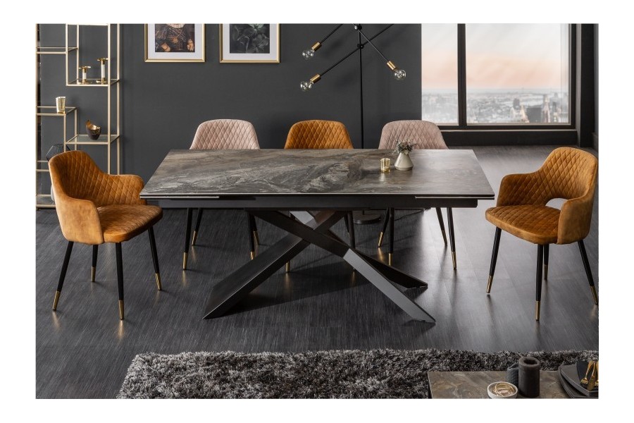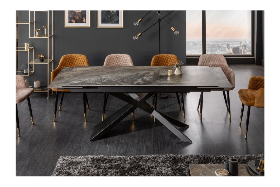 Table à manger extensible 180-220-260cm céramique aspect marbre foncé