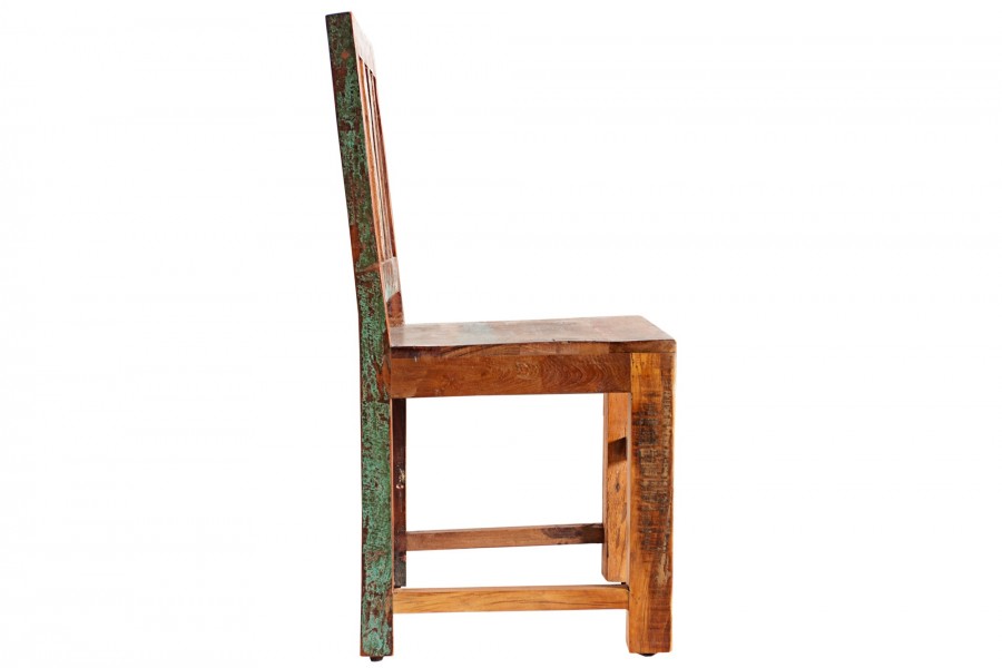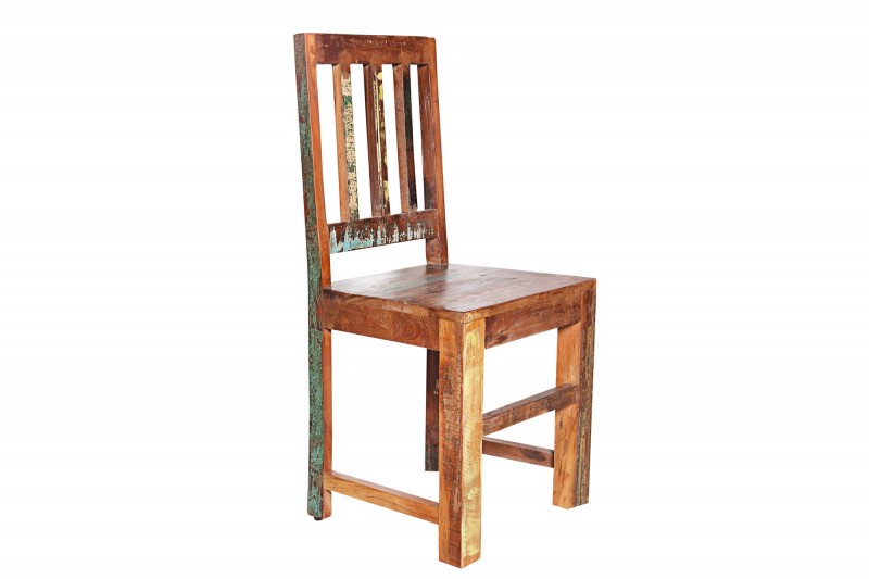 Chaise chic aux multiples couleurs en bois massif, présente les biens faits du recyclage. Elle ornera vos locaux par son aspect original, vous pourrez la mettre dans la salle à manger ou selon vos choix, elle s’adaptera dans tous type d’intérieur.