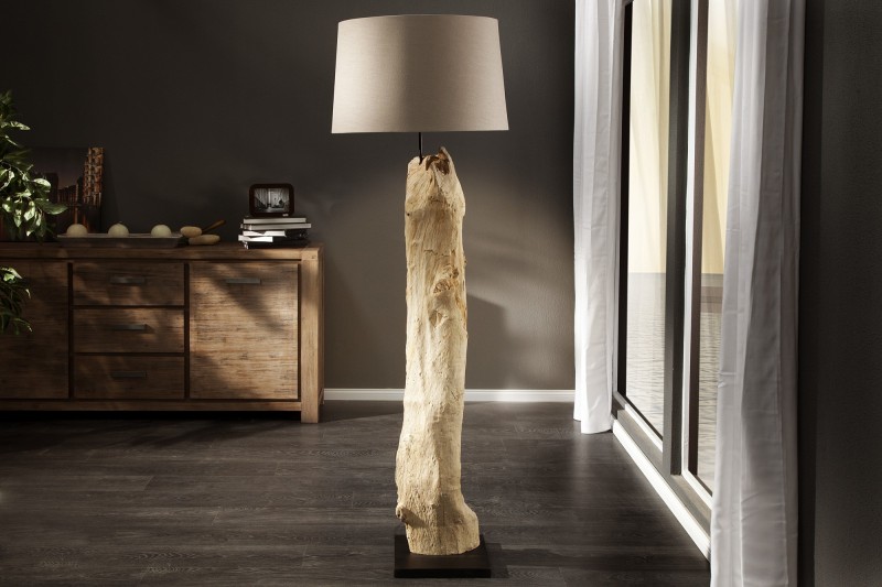 Un lampadaire unique de design remarquable, avec un abat-jour beige en tissu de lin, et un socle de bois massif flotté à haute qualité créer un style naturel et moderne en même temps à votre intérieur.