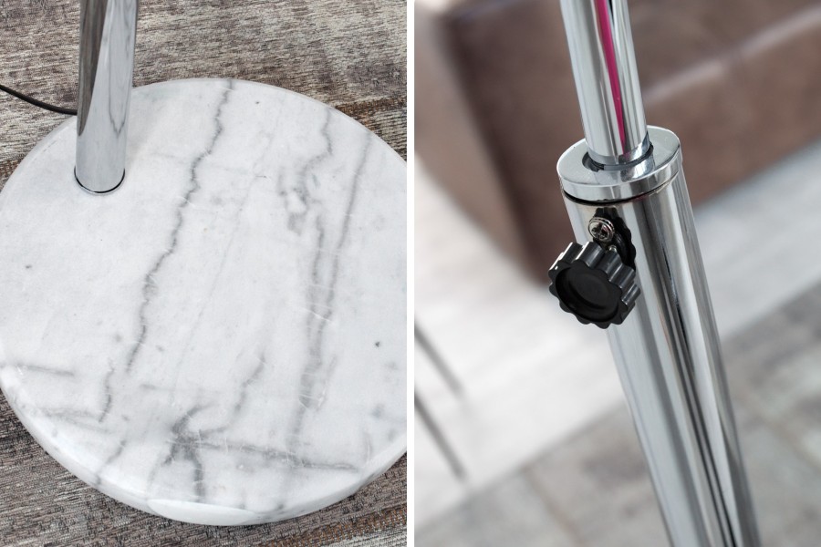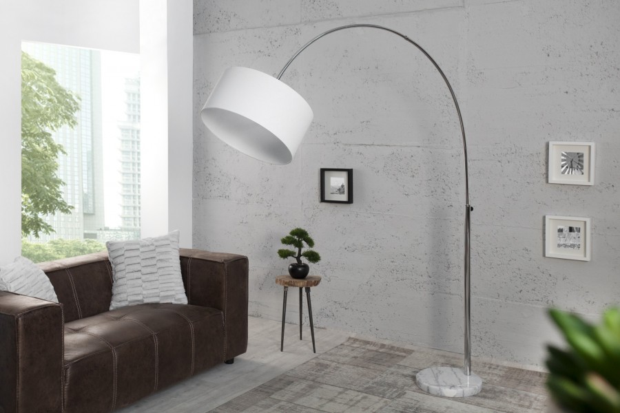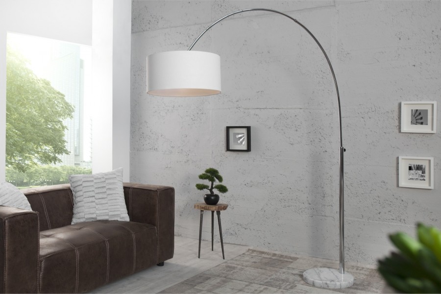 Lampadaire Arc Design Blanc Extensible 200-225cm – Socle Marbre Blanc & Abat-jour Élancé