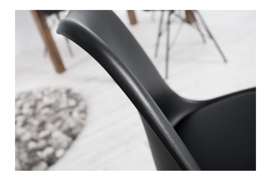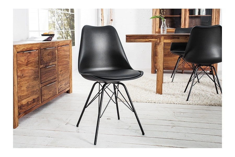 Cette magnifique chaise de style scandinave coloris noir est fabriquée en simili cuir de première qualité avec des piétements en métal , elle vous garantit un confort d'assise absolu et une robustesse grâce à sa structure parfaitement réalisée, de plus son style rétro apportera un aspect séduisant à votre salon, Votre chambre ou votre salle à manger!
