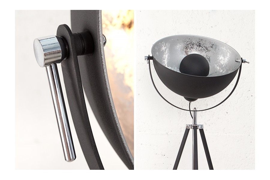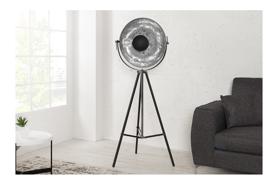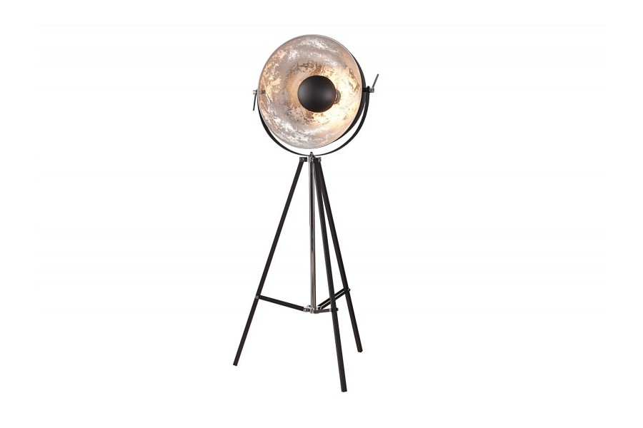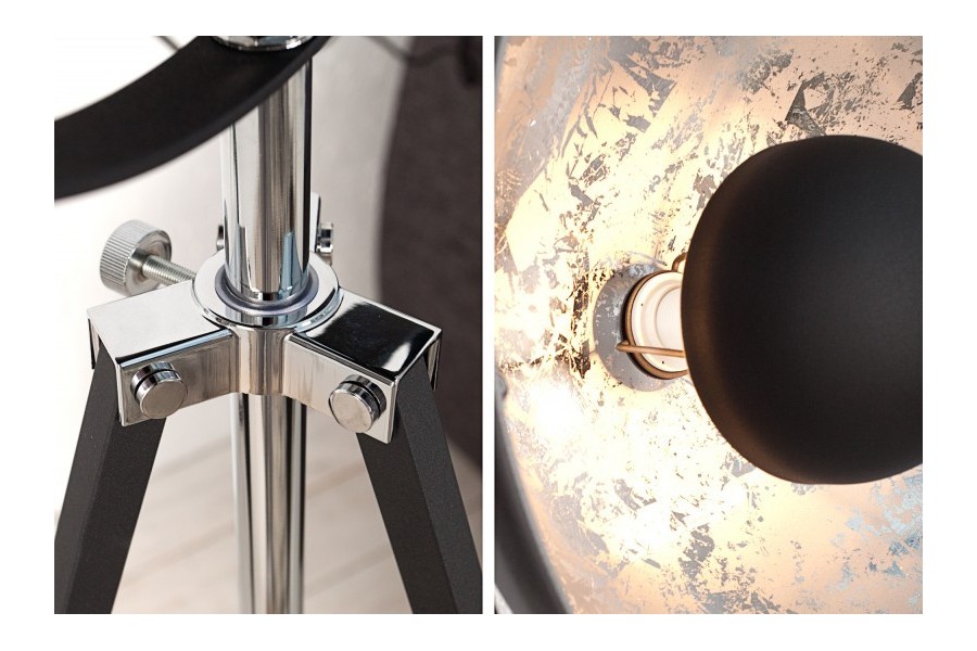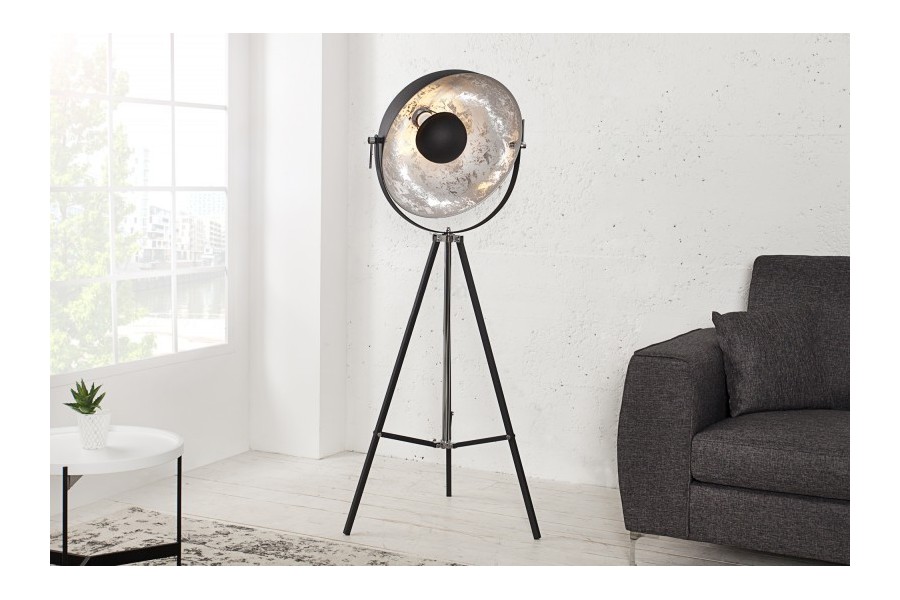 Lampadaire design en acier inoxydable et en aluminium coloris noir et argenté