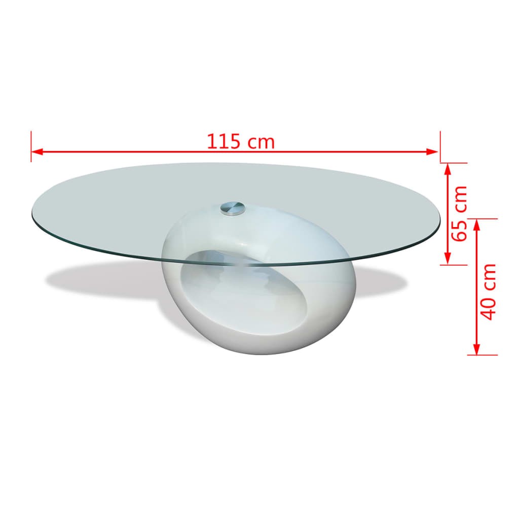 Table basse avec dessus de table en verre ovale Blanc brillant