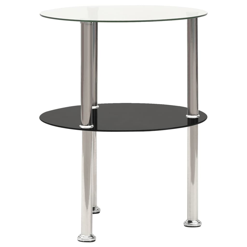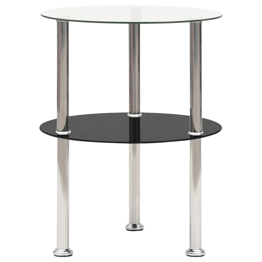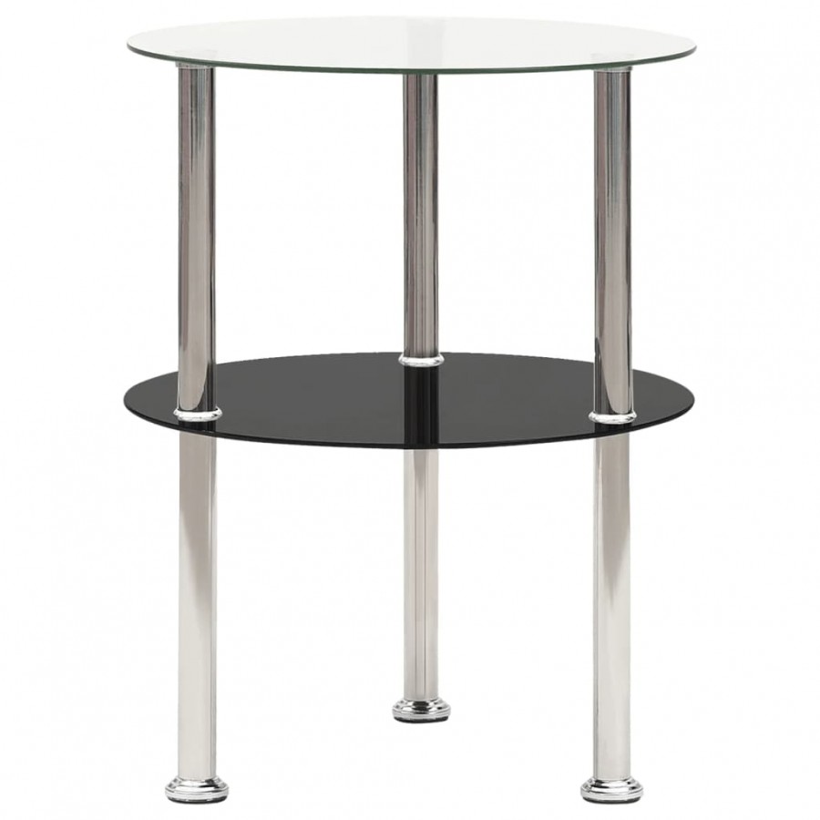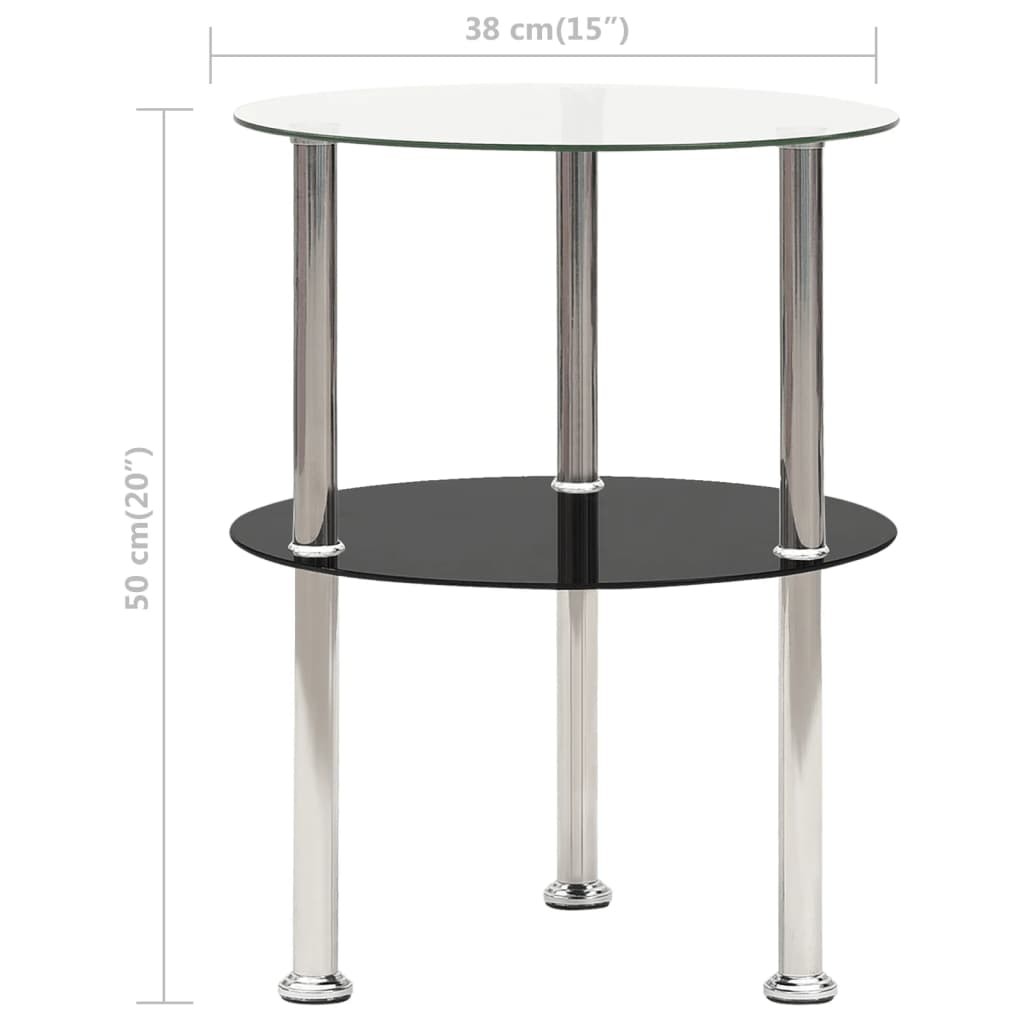 Table d'appoint 2 niveaux Transparent et noir 38cm Verre trempé