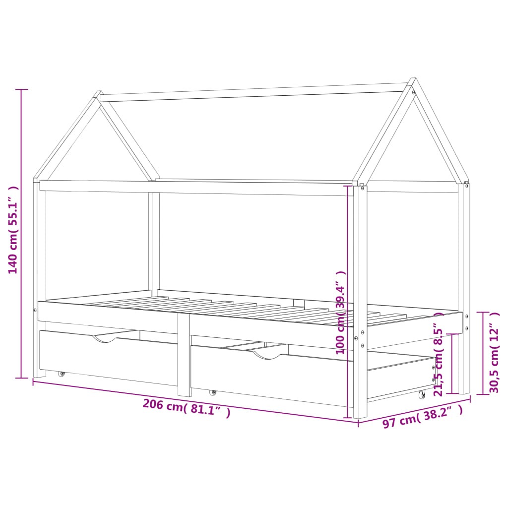 Lit d'enfant avec tiroirs Bois de pin massif 90x200 cm