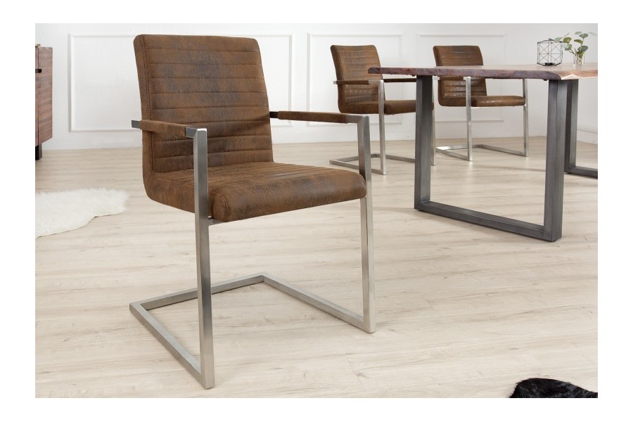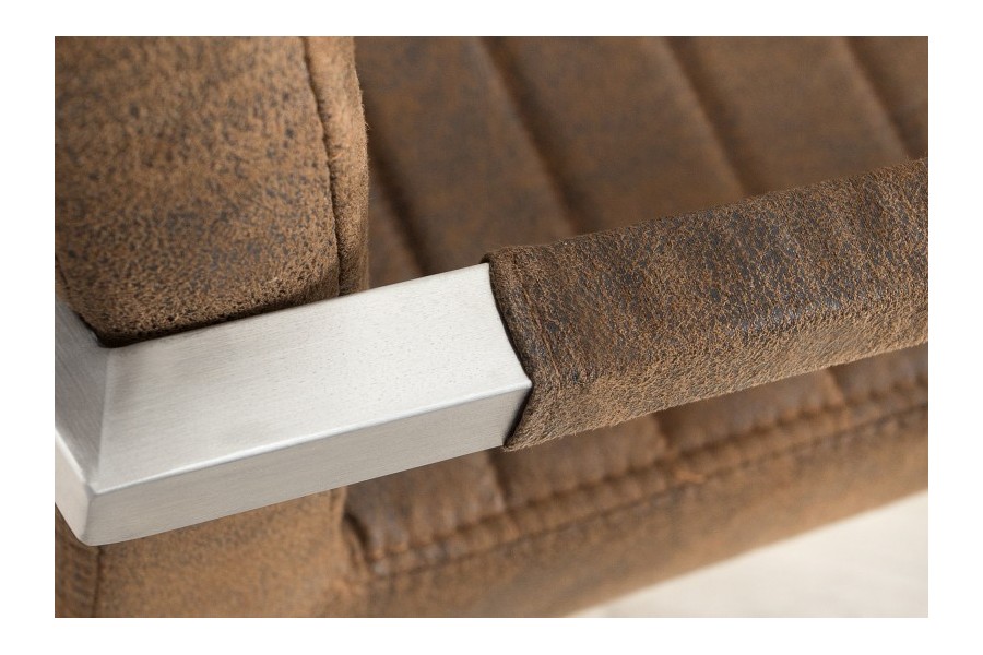Un magnifique lot de 4 chaises modernes coloris brun antique faites luxueusement en microfibre 100% polyester de haute qualité avec des accoudoirs et un piètement en métal garantissant la solidité, Une assise et un dossier parfaitement rembourrés pour assurer votre confort total, de plus son design tendance apporte un aspect chic et attractif à votre séjour !