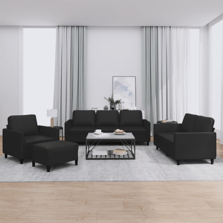Ensemble de canapés 4 pcs avec coussins Noir Similicuir