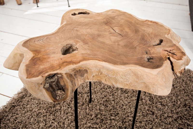 Une magnifique table d'appoint donnera à votre intérieur un cachet naturel et raffiné ! Son plateau est conçu à la main en bois massif non traité de couleur naturelle avec 3 pieds en métal noir ! Très pratique et esthétique, à placer merveilleusement bien près d'un canapé, un fauteuil ou toute autre endroit !