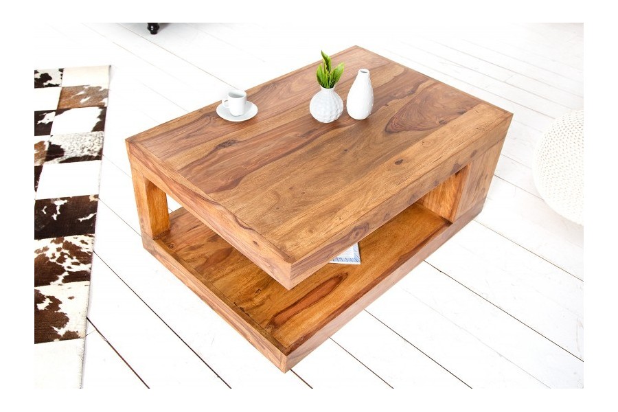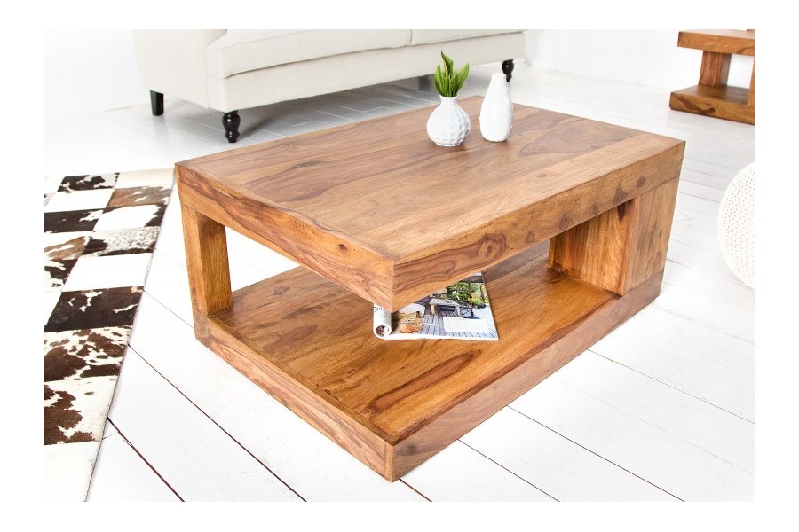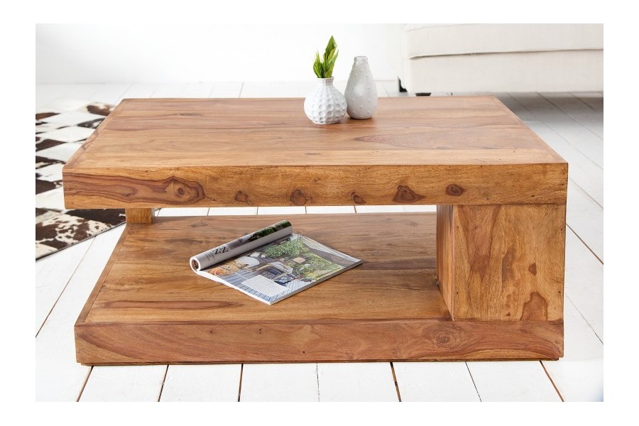 Table basse 90x60 cm design avec rangement en bois massif