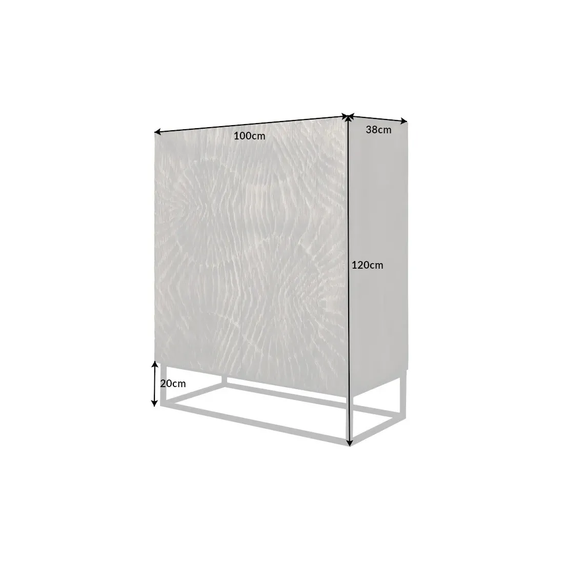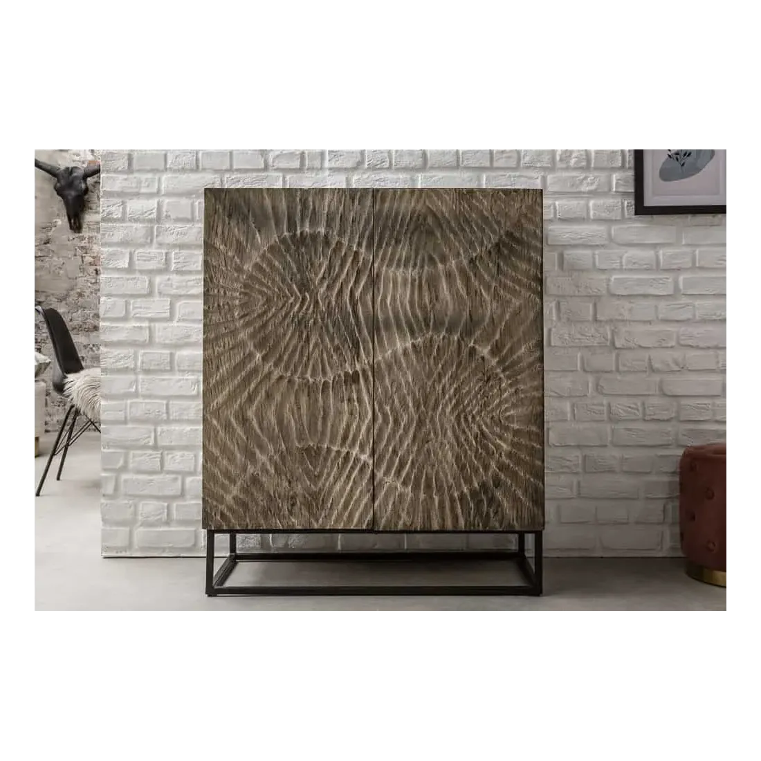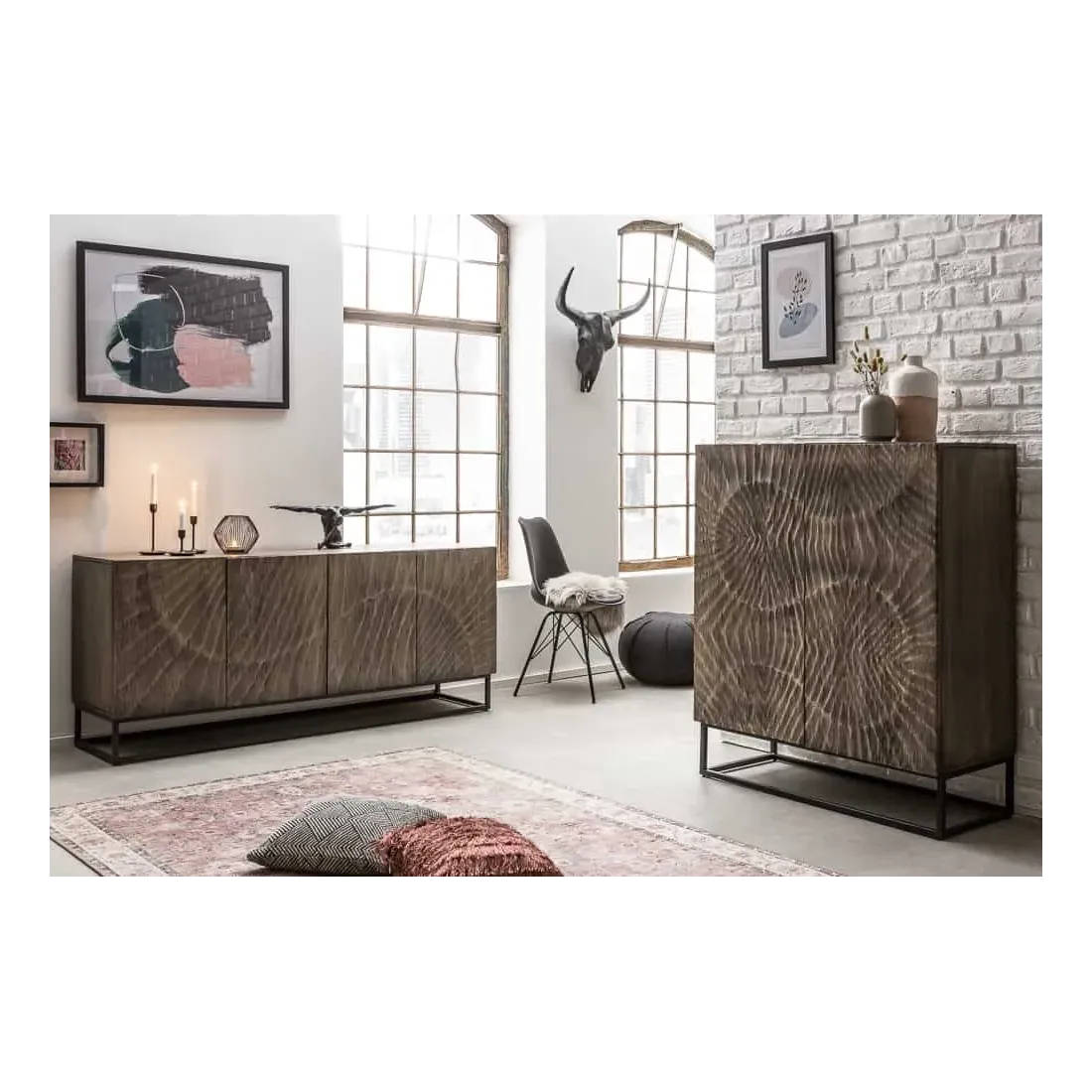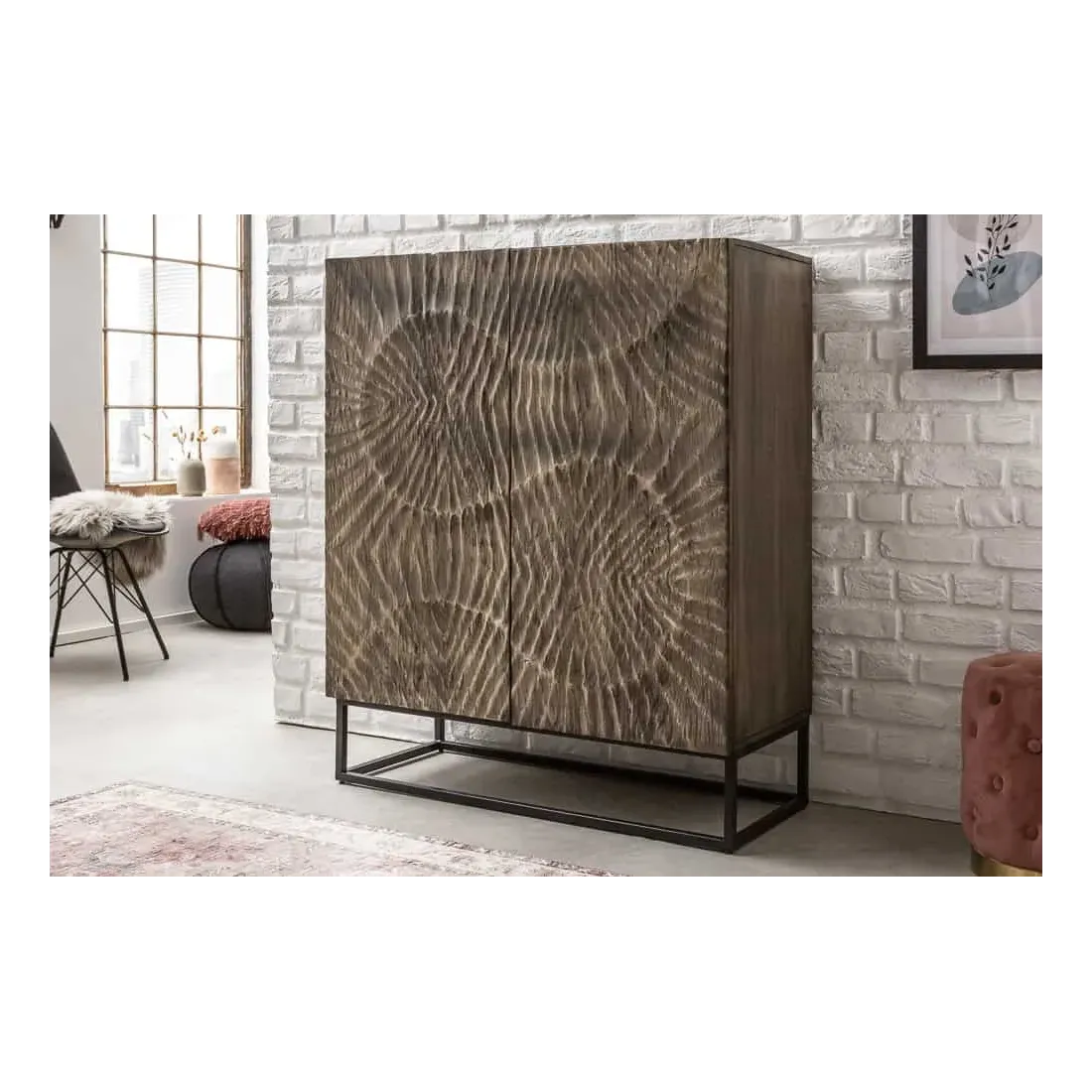 Buffet haut en bois massif SCORPION 120 cm – Acacia gris avec sculptures 3D artistiques