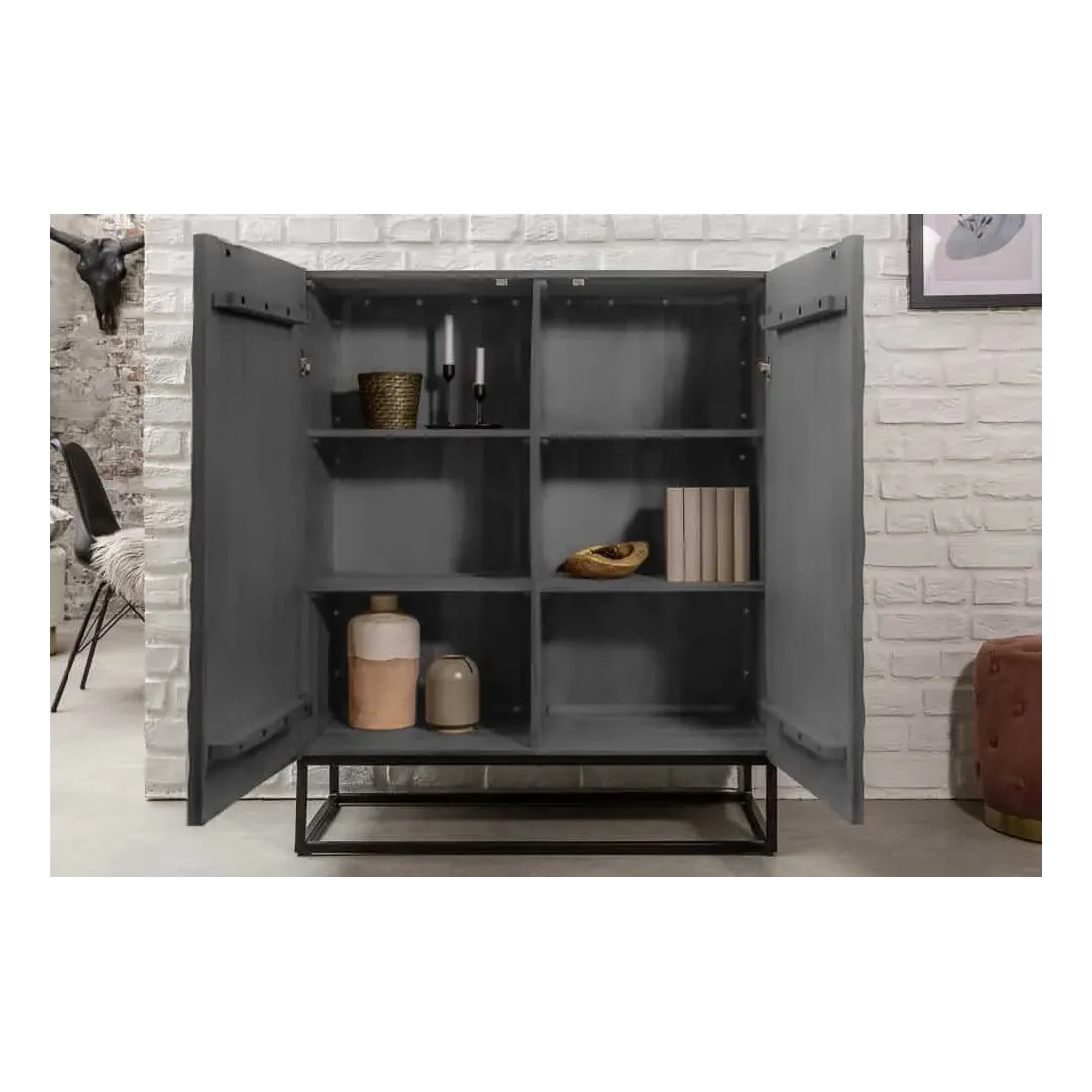 Le buffet haut SCORPION en acacia massif se distingue par ses sculptures 3D élaborées qui en font une pièce unique. Sa finition grise souligne le caractère naturel du bois, tandis que ses lignes modernes et ses pieds hauts en métal apportent une touche de légèreté. Avec ses six compartiments spacieux, il offre une solution de rangement élégante et fonctionnelle.