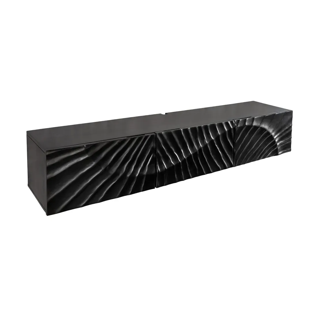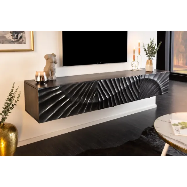 Meuble TV suspendu SCORPION 160 cm – Bois massif de manguier noir sculpté à la main, design moderne
