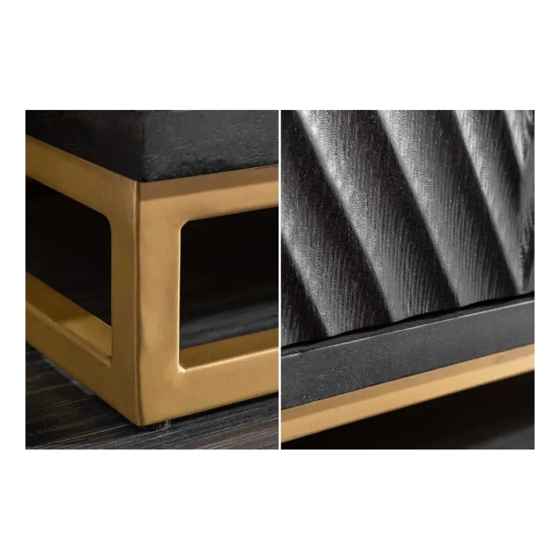 Le piètement doré en métal confère au meuble une touche sophistiquée et élégante, créant un contraste raffiné avec la profondeur du noir.
