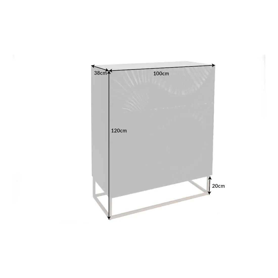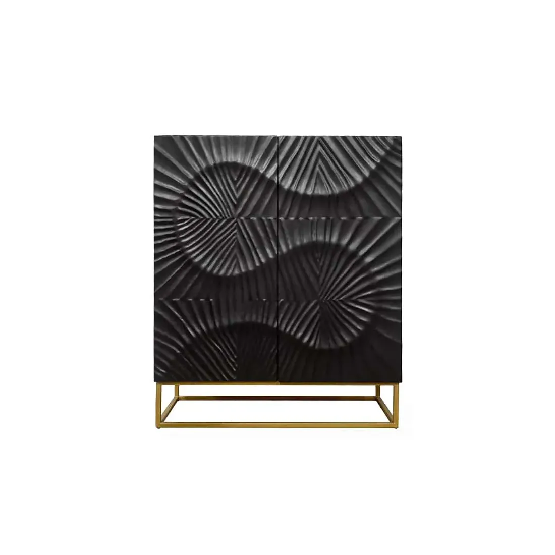 Buffet Haut SCORPION 120 cm en Bois Massif de Manguier Noir Sculpté 3D – Piètement Métal Doré