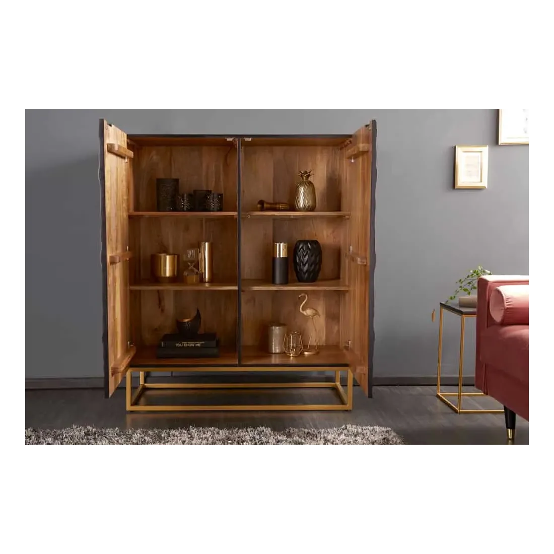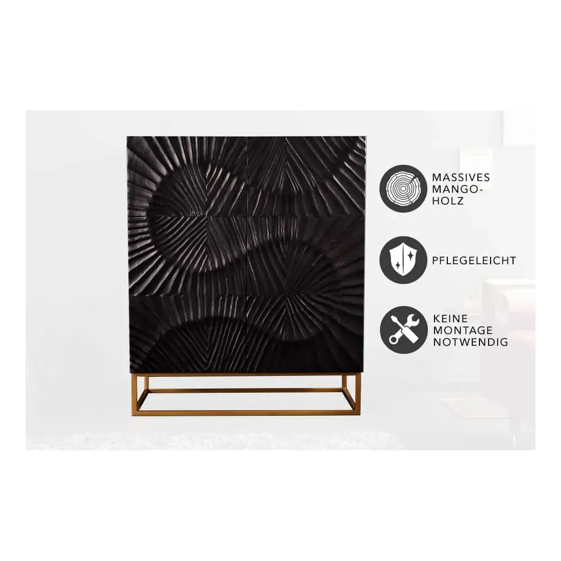 Buffet haut SCORPION 120 cm – Bois massif de manguier noir sculpté à la main, piètement doré