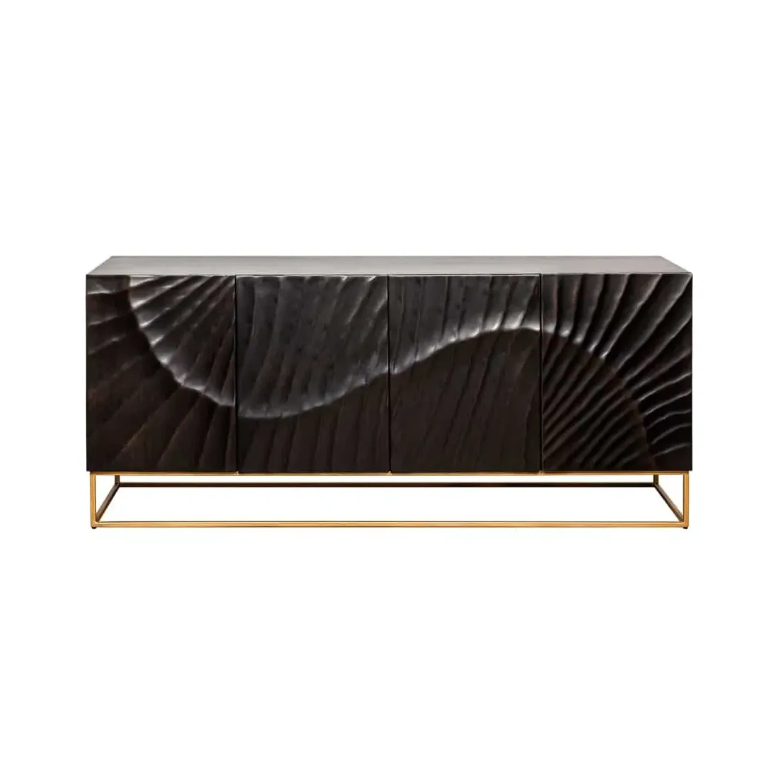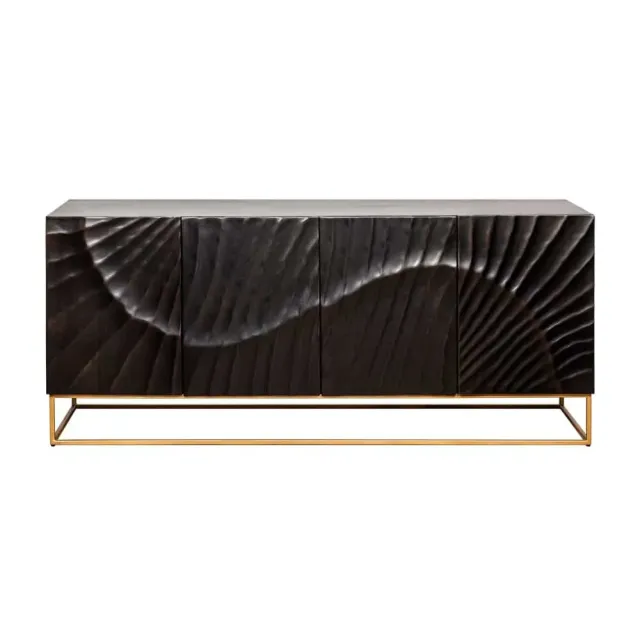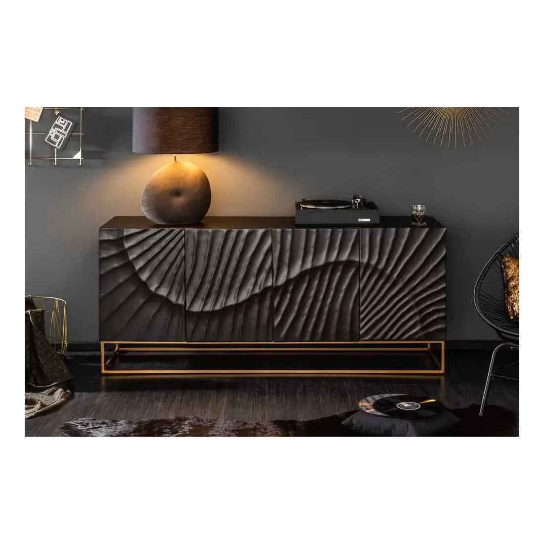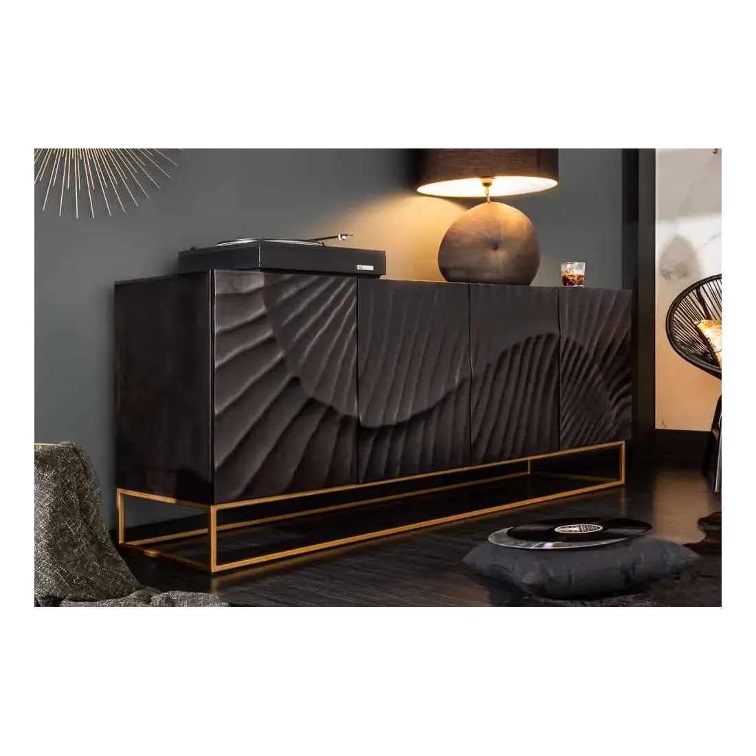 Buffet SCORPION 177 cm – Bois massif de manguier noir sculpté à la main, piètement doré