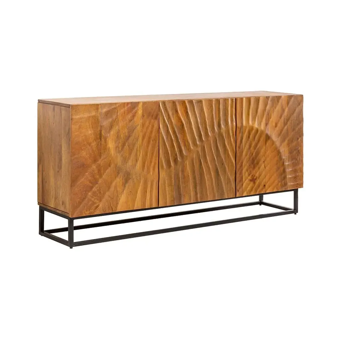 Buffet SCORPION 140 cm – Bois massif de manguier brun sculpté à la main, piètement noir