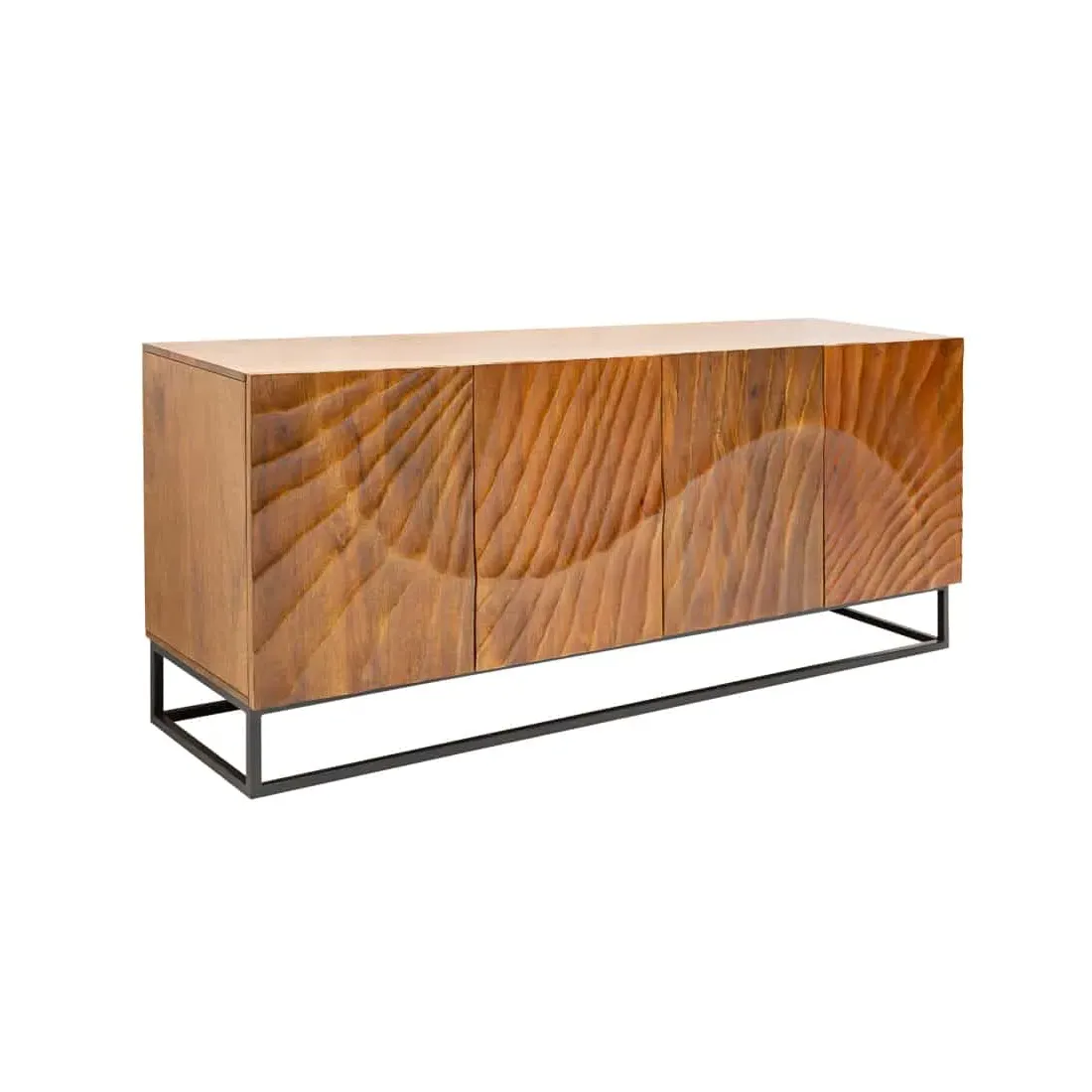 Buffet SCORPION 180 cm – Bois massif de manguier brun sculpté à la main, piètement noir