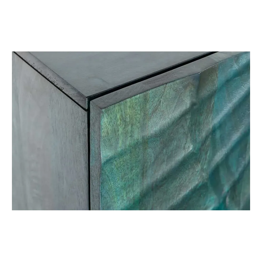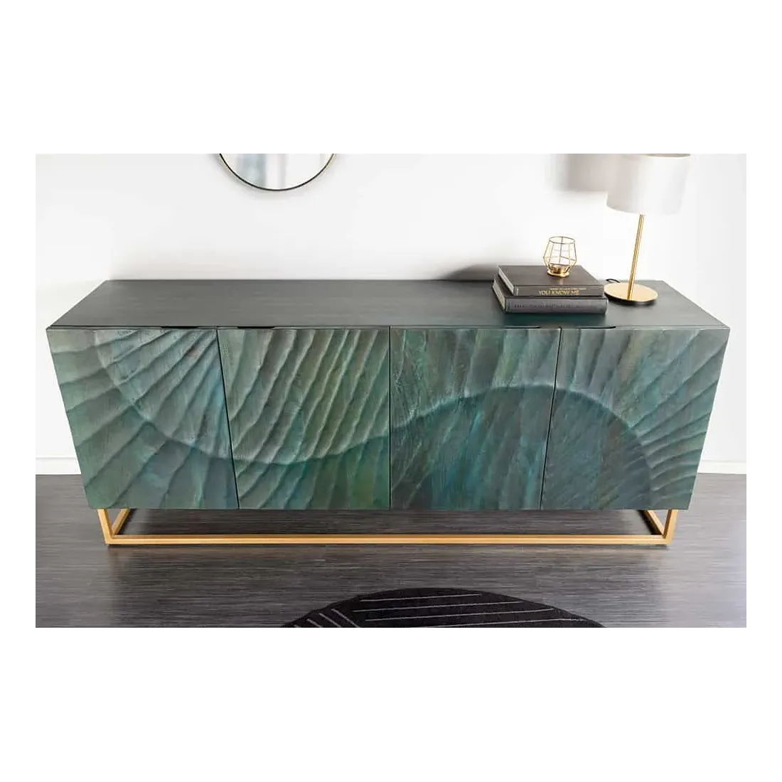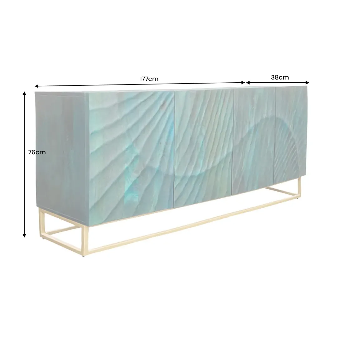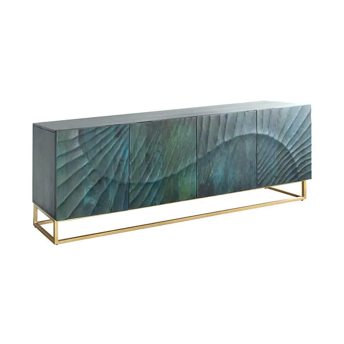 Buffet SCORPION 180 cm – Bois massif de manguier turquoise, détails dorés et façade 3D sculptée