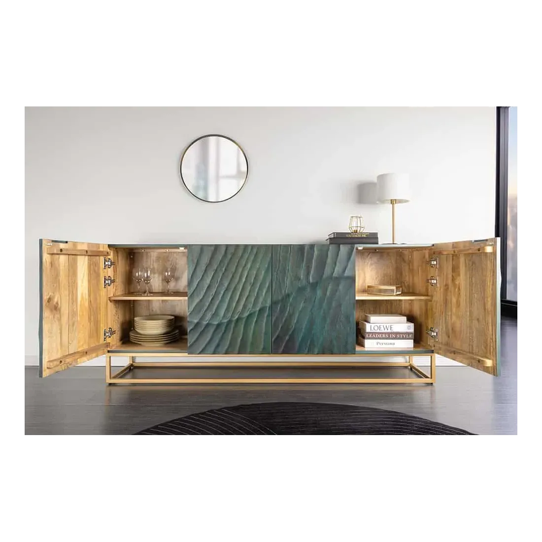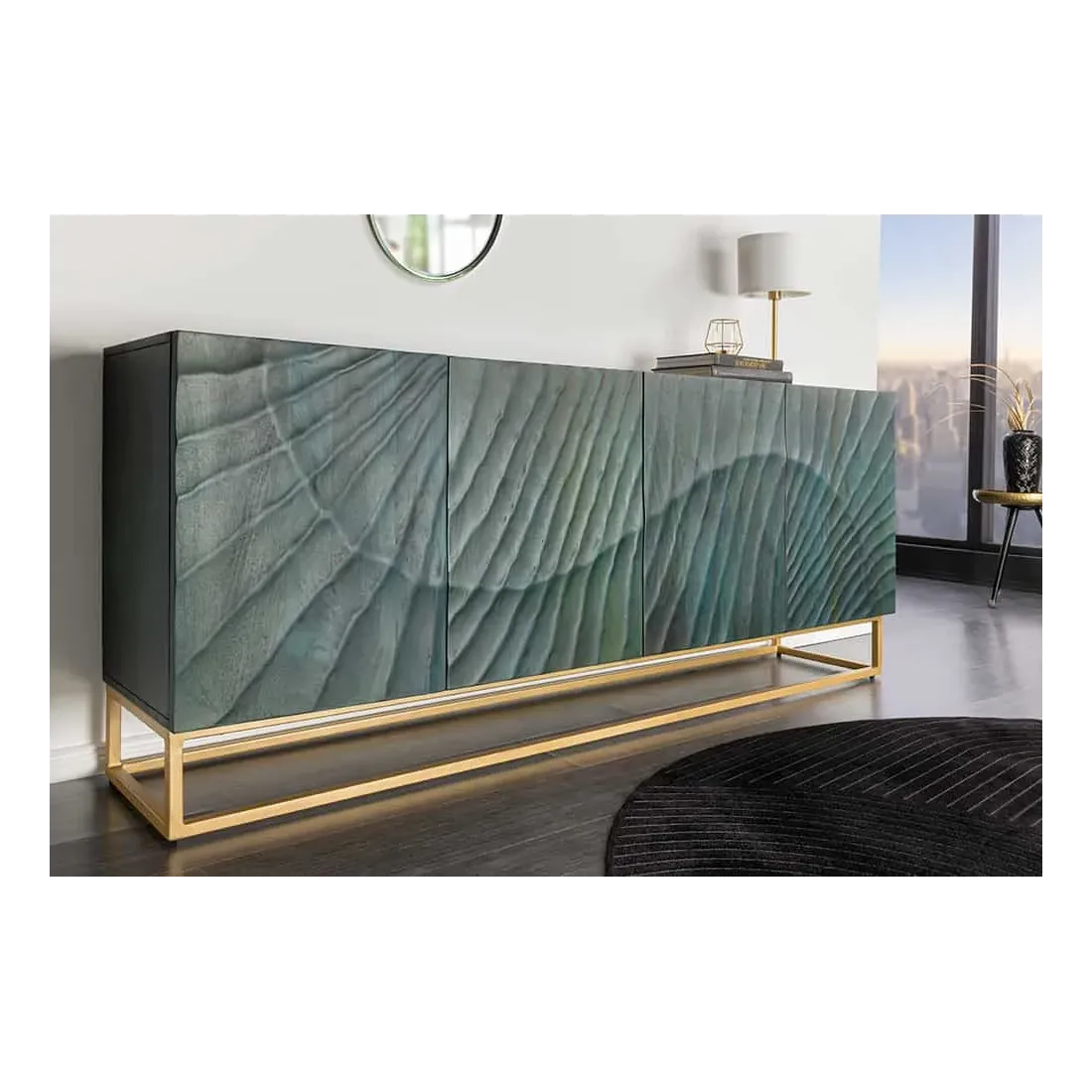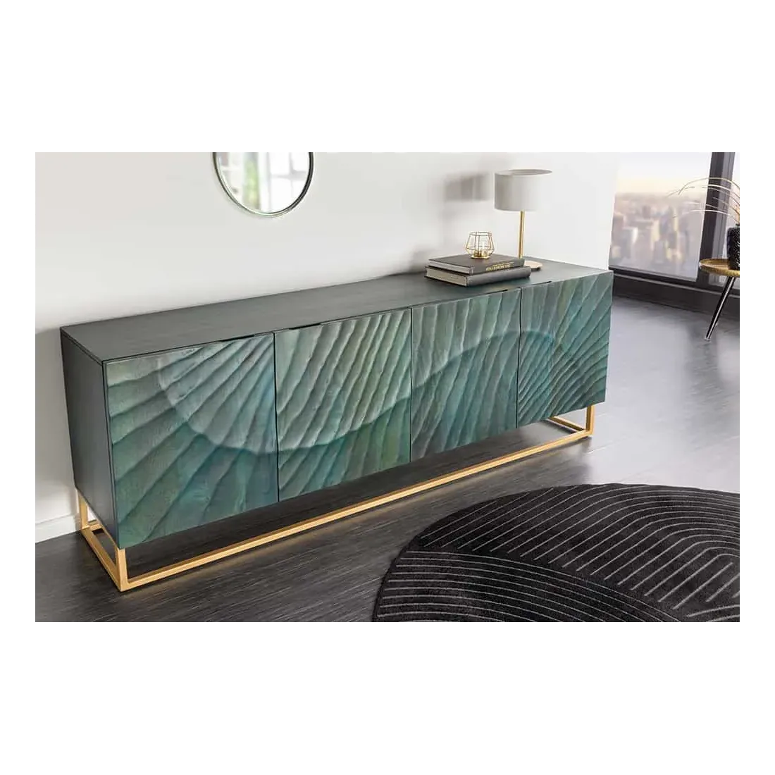 Alliant artisanat de qualité et design contemporain, le buffet SCORPION turquoise & or est une véritable pièce maîtresse pour votre intérieur.